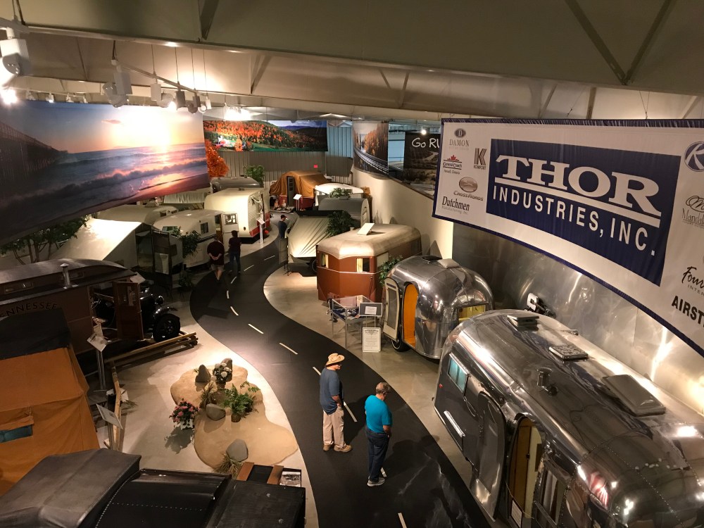 The building is currently divided into 4 major areas but they definitely have room to expand. Upstairs there is a big RVer library that has manuals, magazines, and other books about RVing. We walked upstairs first, at the suggestion of the very nice woman who was working in the gift shop, mainly to see a birds eye view of the gallery.