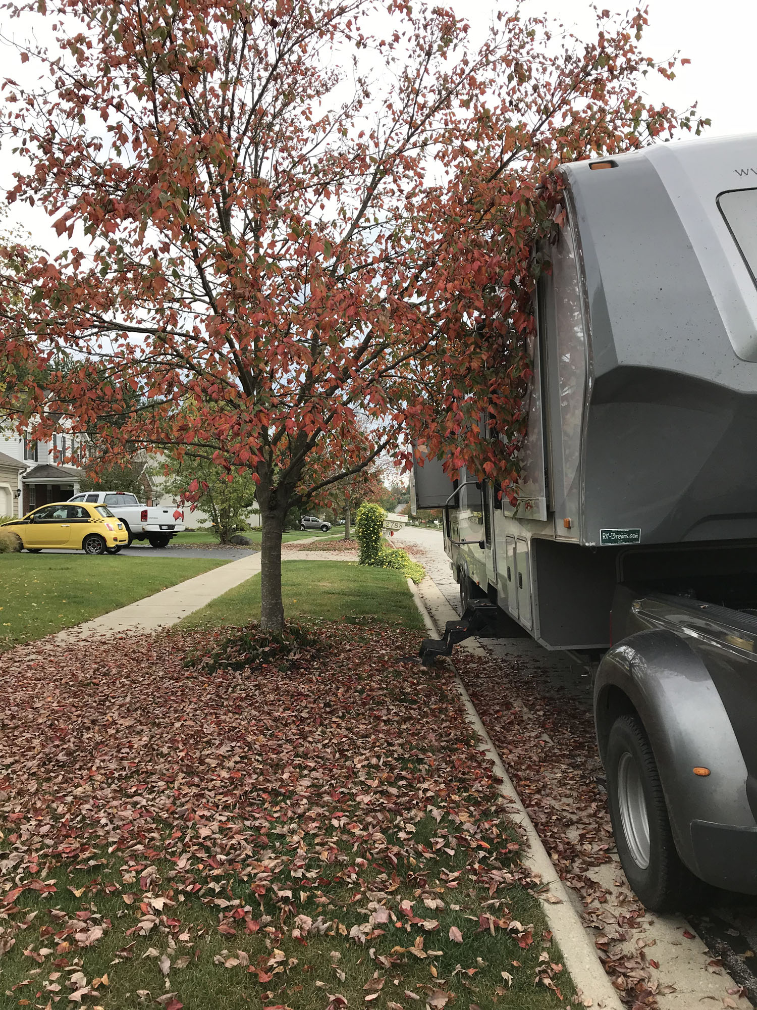 Happy we got to see some of the color in the trees. We try not to keep it on the street more than a few days since it is so tight (and out of respect for the neighbors) and this time we are sending our rig to the shop on Tuesday.
