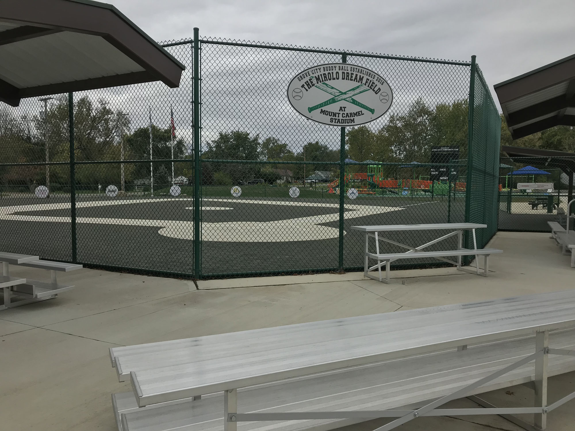 After brunch Dad and I went back to his house but made a few stops first. I had made a promise to myself that I would see my Uncle Jimmy’s grave and Dad immediately said he would go with me. But first we stopped and saw the project Uncle Jimmy worked on before he died, and I was blown away. A few years ago, Uncle Jimmy and a group of 3 other local octogenarians decided they wanted to build a ADA baseball field. They went to the city before they started the project, who said if they raised $250,000 they would give them a piece of land and the utilities. I think they thought that would be the end of it, but they didn’t know my Uncle Jimmy. His group raised over $580,000 and not only did they build the field but also a picnic shelter, bathrooms, and a playground…all handicapped accessible. Absolutely amazing.