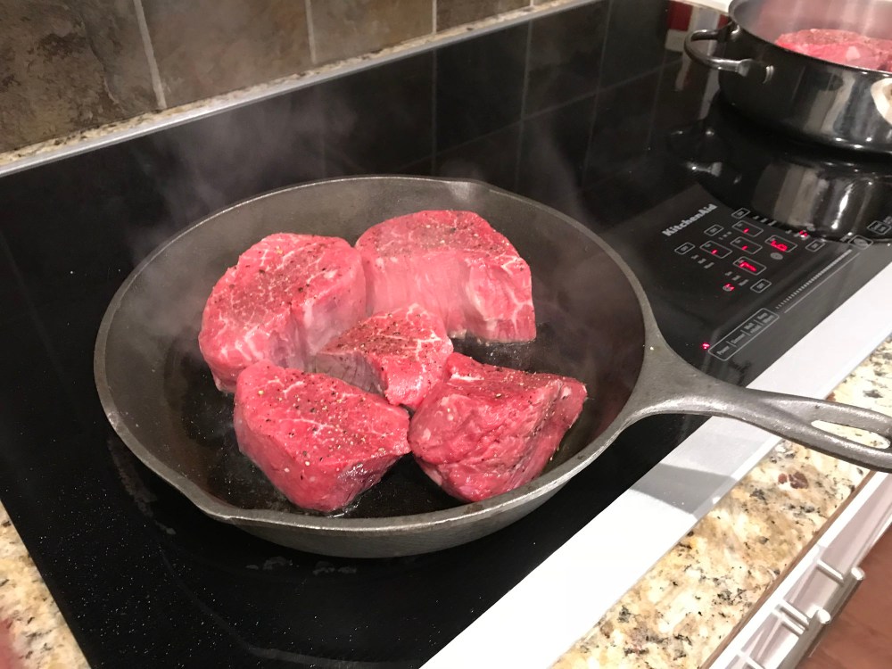 Wow these steaks were good and cooked perfectly. (It was a close call. As you can see above, they were very nearly burnt. Whew. – Lee)