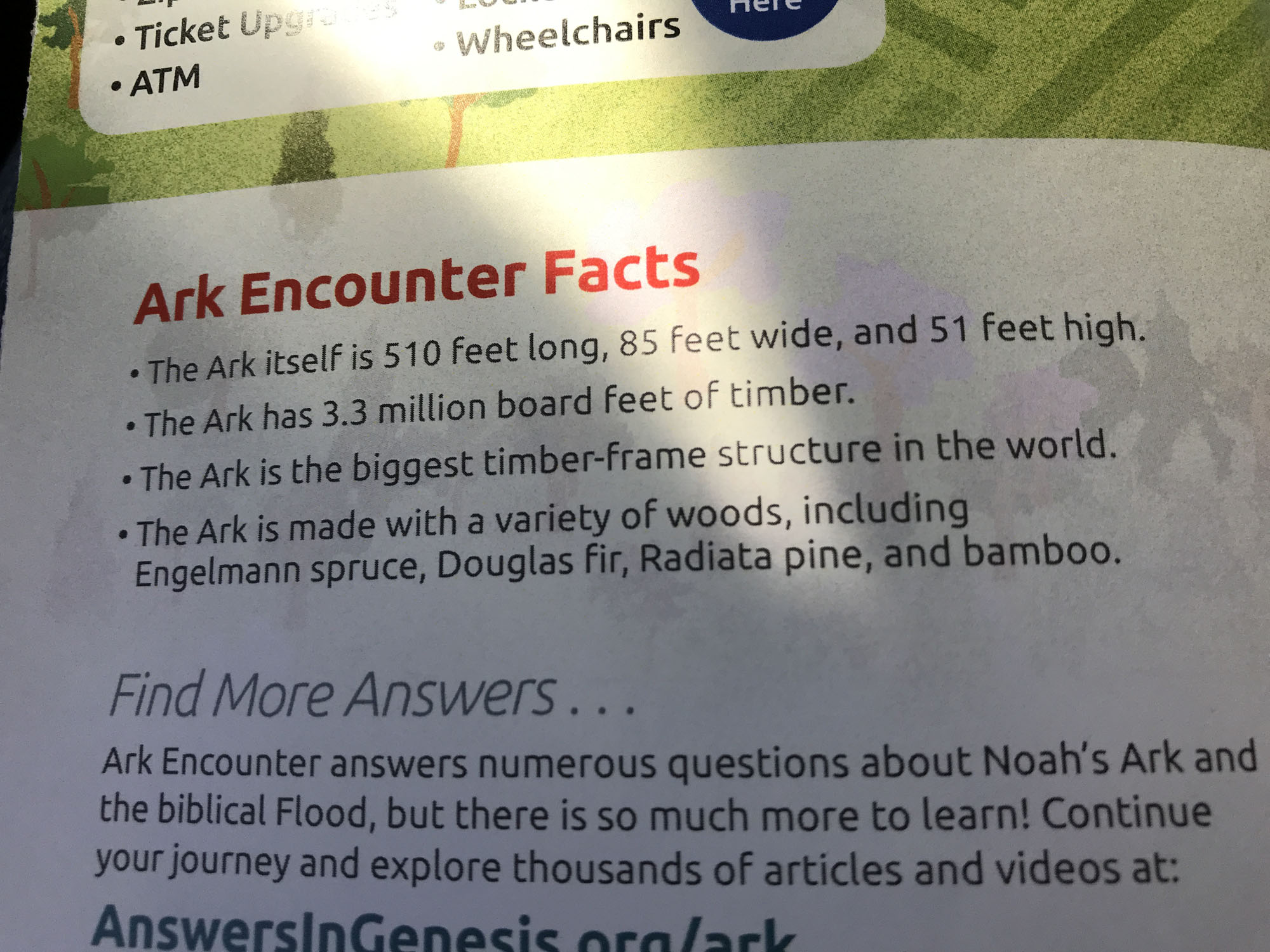 We did have a little confusion in the parking lot and weren’t sure where to go, but eventually we walked to a small building which is where we bought our tickets. The day price was $40 for me, (they had a military and senior discount and DeDe received both which took the price for her to $31), but they also had multiple day passes and combination passes with the Creation Museum which was 45 minutes away. We chose the day pass, and I winced a little at the price, but Denny offered to pay for us and I was happy to accept. We are on a limited budget and rarely spend that sort of money on any experience.