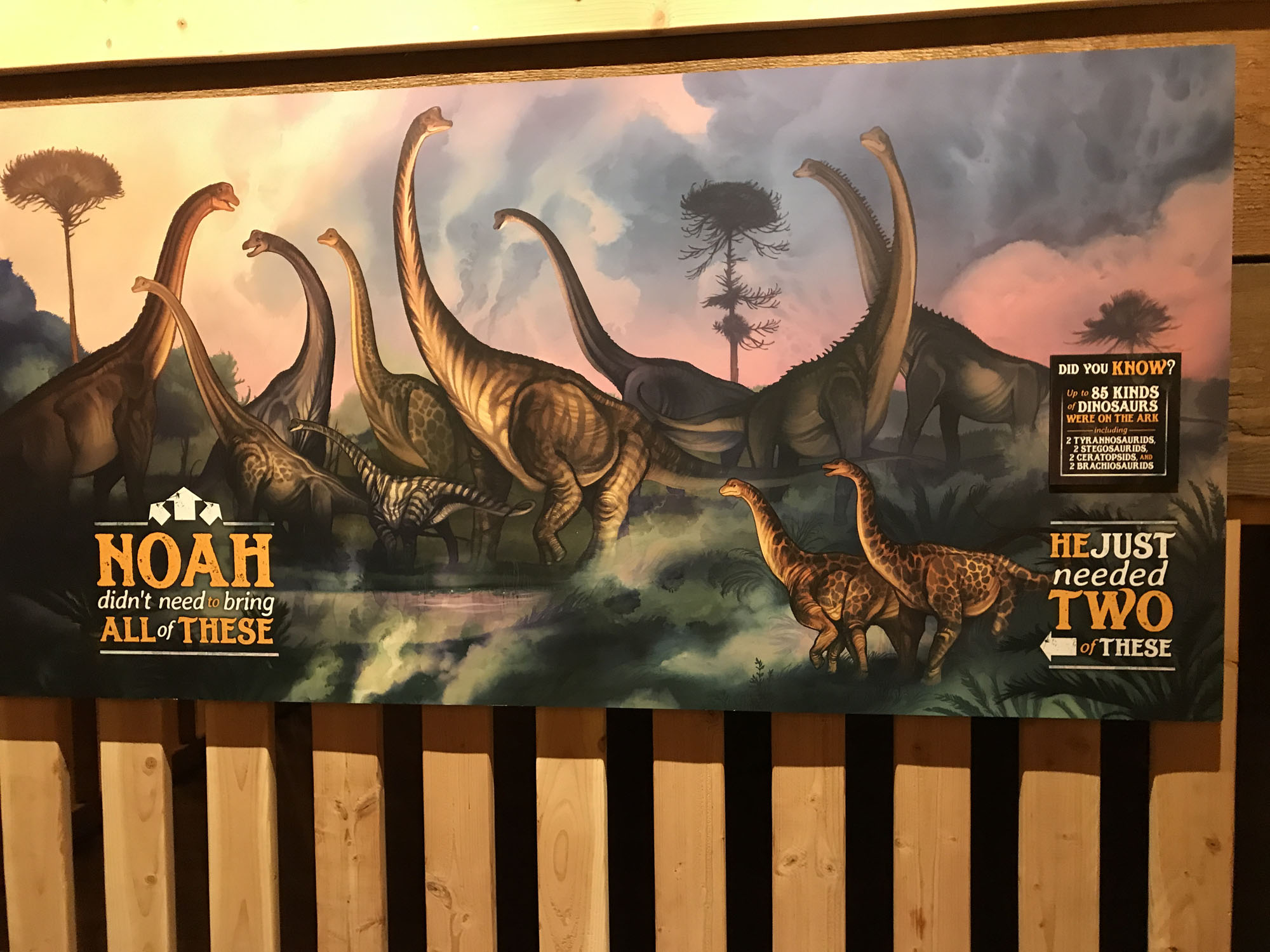 This poster explained that Noah didn’t need to bring full size brontosaurs with him, but instead could bring two of the babies