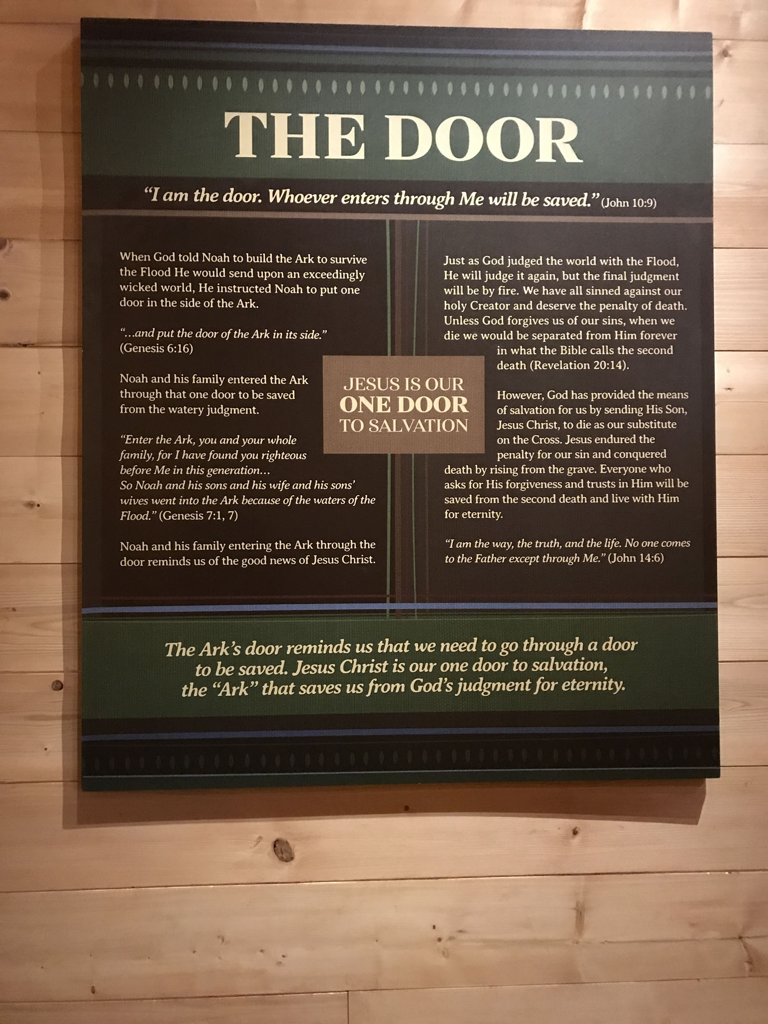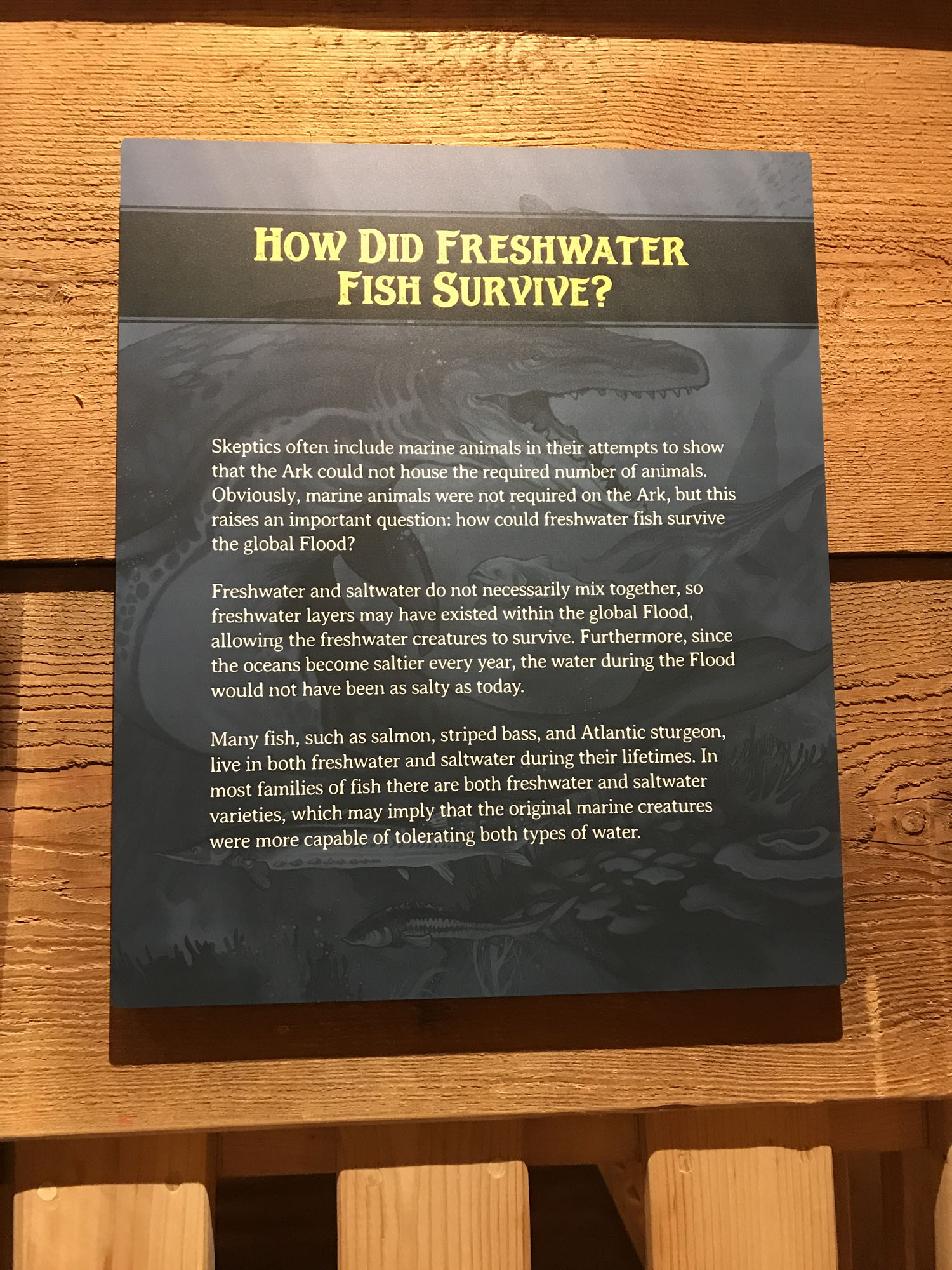 This poster explained how freshwater fish survived. Noah didn’t need to bring the ocean dwelling fish on the boat of course.