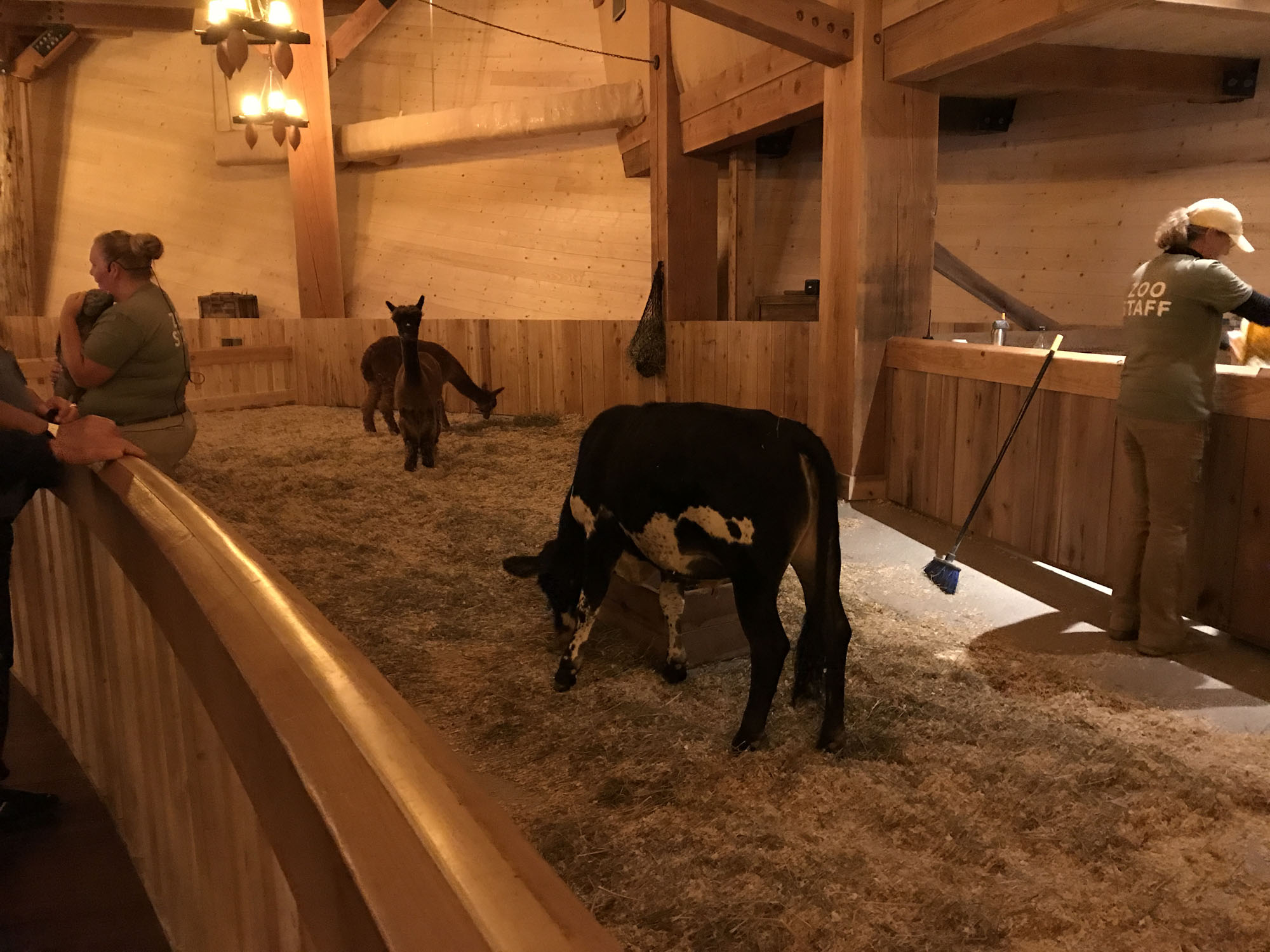 The second floor also contained a small petting zoo area and the llamas were pretty cute and the door of the arc which had a large cross made of light projected on it.