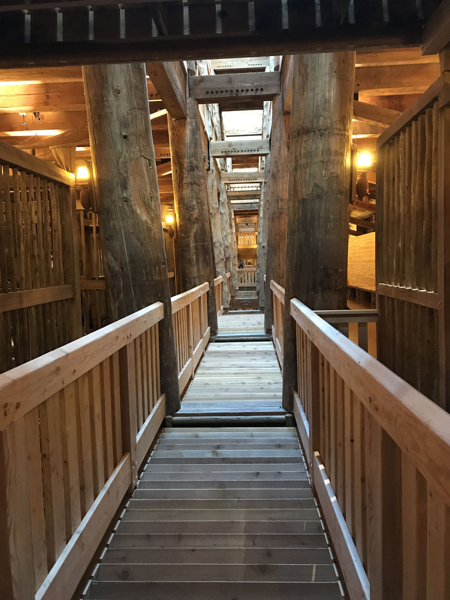 The first and second floors were mainly animal pens and the construction was very interesting. Different types of pens for different types of animals and food, water, and waste solutions for each kind. It was obvious that an incredible amount of thought had gone into how you would transport this many animals and I found all of that pretty interesting. They also had calculations showing how they thought 8 people could manage the workload and the amount of food, water, and oil that would have needed to be stored.