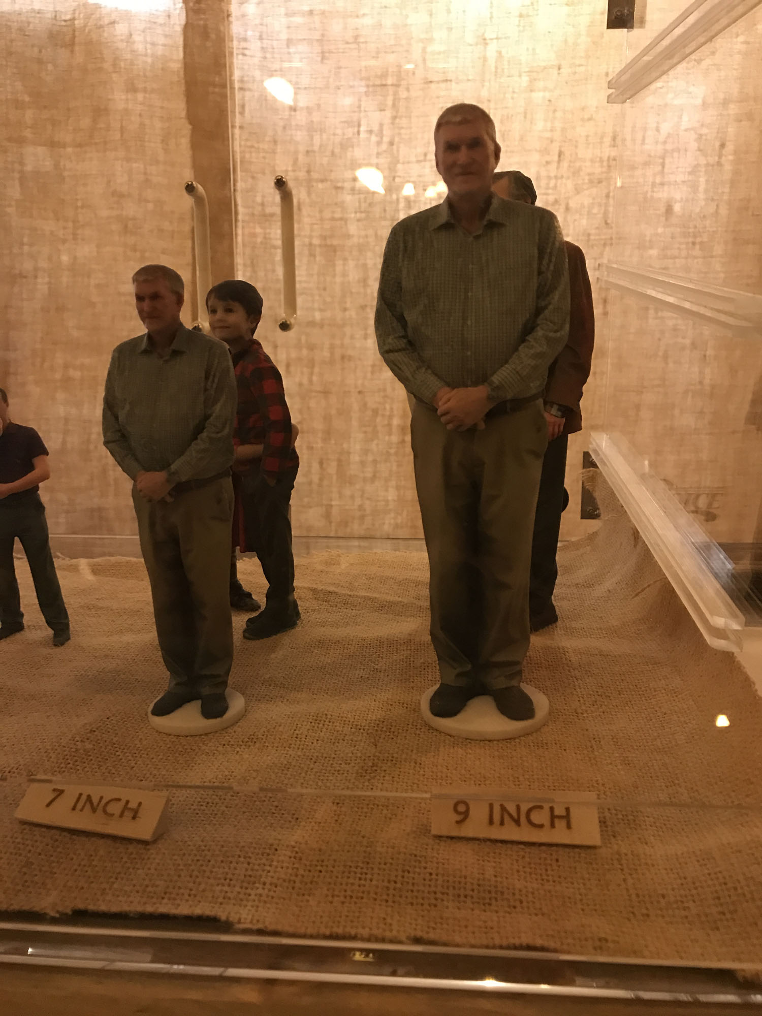 One you pay your admission you get on a large bus and are driven to the site. It opens into a large plaza where they had food stands and some nice gift shops. We walked down into the ark area and it was neat getting up close. The ark is HUGE, and on the back side has a building that is attached to it to give additional space for exhibits, restrooms, and elevators. The guys noticed that some bolts were used in the construction and I noticed the sprinkler system, but none of that bothered me at all. Obviously the building needs to be built to modern-day code standards, and I appreciated the fact that it was wheelchair friendly. We actually paced a woman in a wheelchair throughout our visit and she was having a wonderful time, taking pictures, and didn’t seem to have any issues with the layout, even in the smaller side spaces.