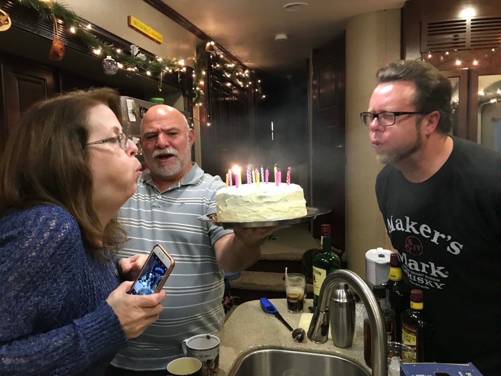 Saturday, Bill, Kelly, Linda, and Steve went to Maker’s Mark but again Lee and I stayed home. We do plan on visiting at least one bourbon manufacturer before we leave, really have to do that when you are in Kentucky, but other errands took precedence. Plus, we were having combination birthday celebration for Steve and Kelly that night and I wanted to try out some new appetizers. I am still picking away at new recipes for my second recipe book and certain ones really are best prepared for a group so I prepared Mini Beef Wellingtons (cool concept but I overdid the horseradish), crab puffs (turned out OK, but not quite good enough to make the cut, and a large loaf of cheesy bread. The best thing about the bread was Linda had a better recipe she shared, so next time I will try it her way and hopefully will have a winner. It was all fine, but the star of the show was Grandma Murray’s carrot cake (which Kelly ended up making), which is literally the best carrot cake any of us have ever had. That recipe is in my existing recipe book and never fails. We had a wonderful time with spirited conversation and as always it was wonderful celebrating fellow RVers birthdays. We are with our friends on their special days more often than I ever thought we would be, but this is the first time we were able to celebrate Kelly’s with her.