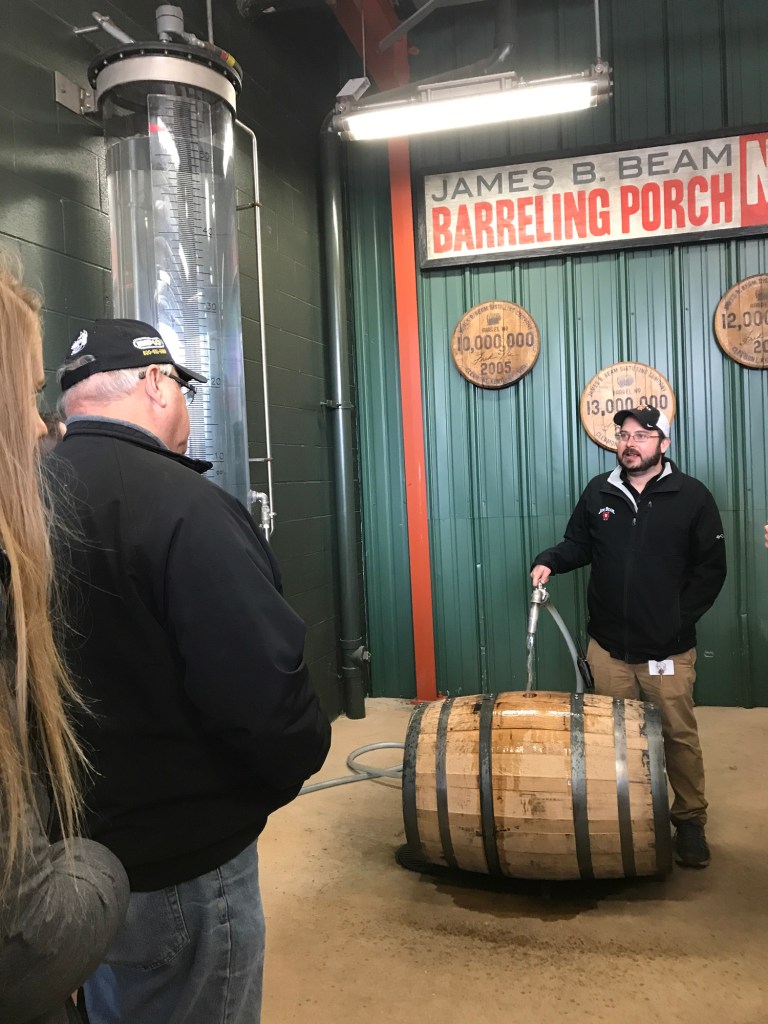 I am not a big drinker and have never drank bourbon, but I love to see how things are made, and since we were in Kentucky a bourbon tour was definitely called for. Our friend Bill actually worked and lived here for many years at one of the distilleries so going with him made the experience really special. Bill and Kelly were trying to finish the six tours they needed for a special Bourbon Trail T-Shirt and had saved one of the best ones for us, the Jim Beam Distillery. Even though Bill was in the industry many years ago and had actually been inside the plant, he had never taken the tour. The tours didn’t exist until 2012, so for him it was a new experience as well. And of course, we were complete newbies to the whole process so I took lots of notes and pictures and will try to recreate the experience. To all of you aficionados out there, if I get something wrong that is totally on me. We were inside and outside during the tour and since it was chilly I was taking notes and pictures with my phone. Plus, If I get something totally wrong I am sure Bill will jump in on the comments and set me straight 🙂
