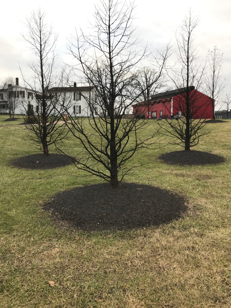 We pulled into the facility and I really loved the campus. It is a large area with rolling hills and numerous buildings. Not only was it extremely picturesque, but it also had history as some of the buildings were there in the 1920’s. This property was bought by the Beam family towards the end of prohibition and they ran a rock quarry from it (to keep their employees in jobs) until prohibition ended. The original family home is still on the property and is protected as an historical site. I really liked the statues of people they have added and although it was cold we did spend some time walking the grounds. I think it would be wonderful in the summer, because it is laid out like a large park.