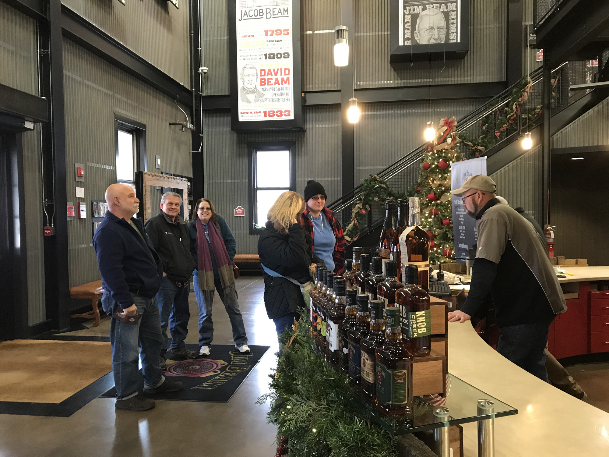I am not a big drinker and have never drank bourbon, but I love to see how things are made, and since we were in Kentucky a bourbon tour was definitely called for. Our friend Bill actually worked and lived here for many years at one of the distilleries so going with him made the experience really special. Bill and Kelly were trying to finish the six tours they needed for a special Bourbon Trail T-Shirt and had saved one of the best ones for us, the Jim Beam Distillery. Even though Bill was in the industry many years ago and had actually been inside the plant, he had never taken the tour. The tours didn’t exist until 2012, so for him it was a new experience as well. And of course, we were complete newbies to the whole process so I took lots of notes and pictures and will try to recreate the experience. To all of you aficionados out there, if I get something wrong that is totally on me. We were inside and outside during the tour and since it was chilly I was taking notes and pictures with my phone. Plus, If I get something totally wrong I am sure Bill will jump in on the comments and set me straight 🙂