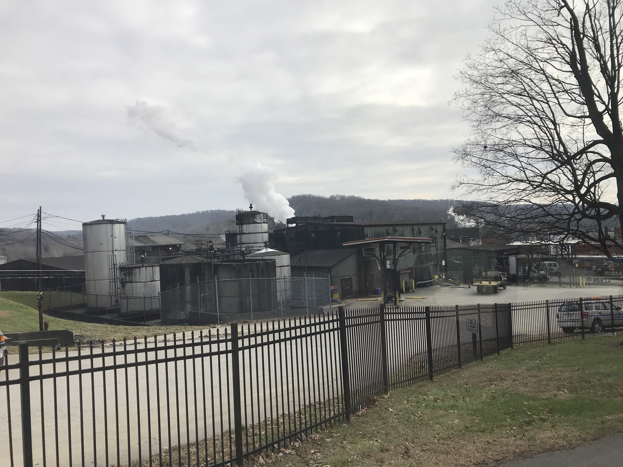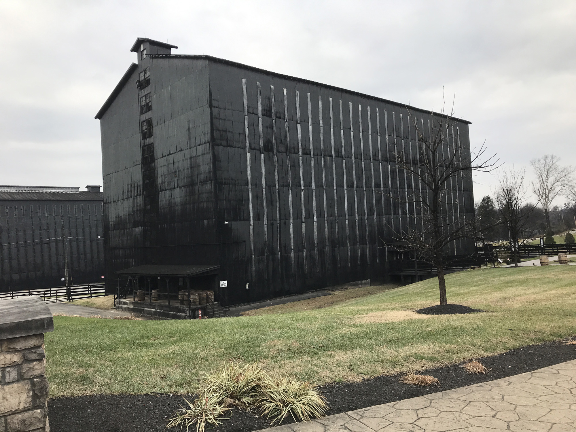 The black on the building is a fungus that happens near all distilleries. It’s not harmful but it is unsightly