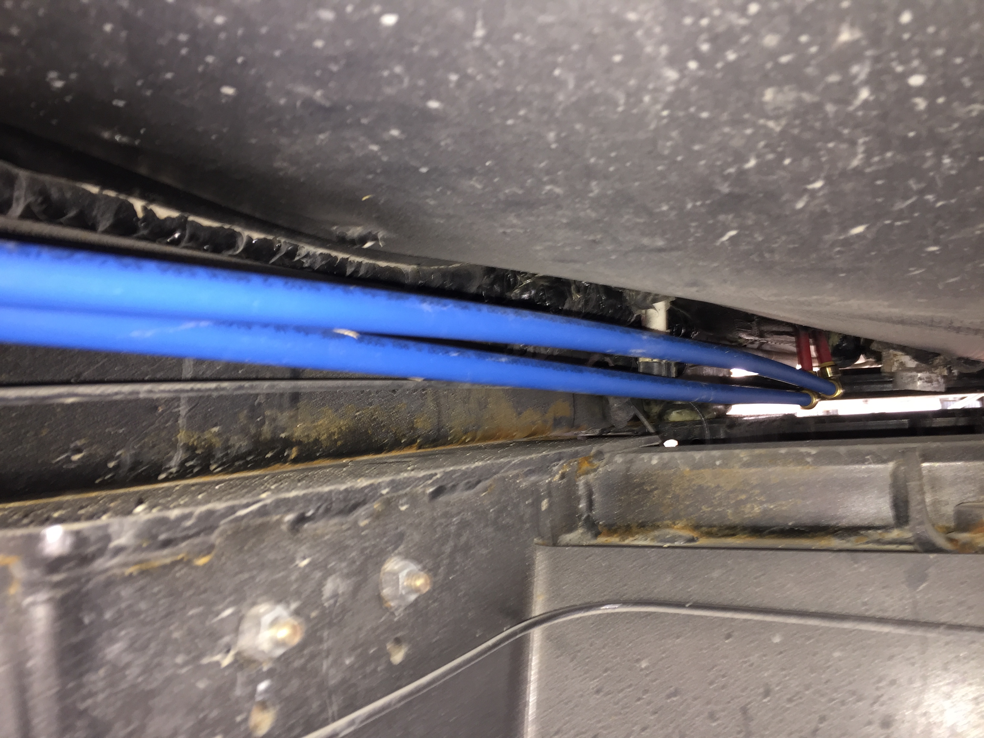 When we got our Mor-Ryde suspension back in November my solution no longer worked. The pex lines come out of the underbelly, between the two axles, and I used to be able to just get down on one knee and reach under to them. They were just behind the forward tire.