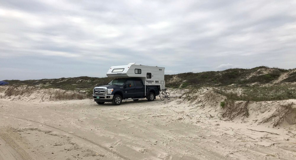 But most of the campers were in tents, popups or truck campers tucked into little inlets in the dunes for additional wind protection.