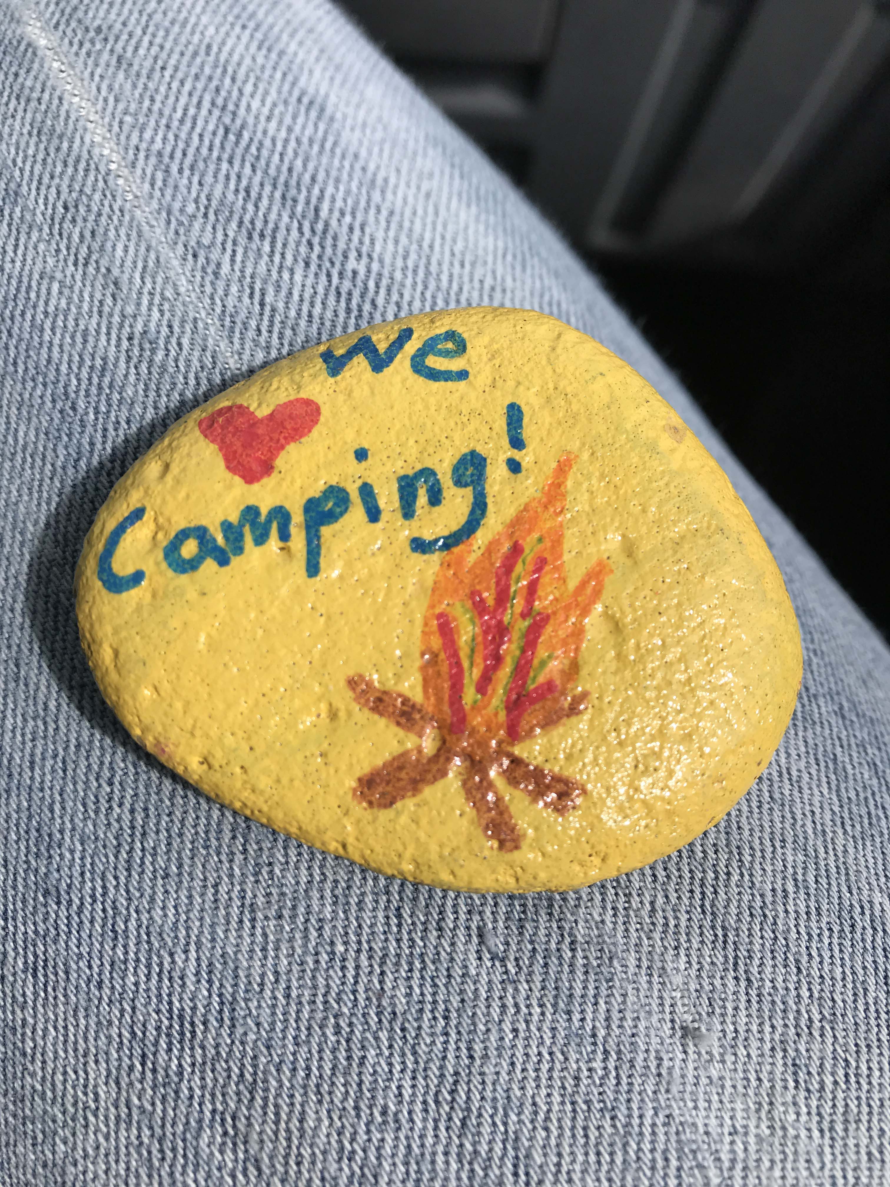 We found two different rocks at gas stations on our way. These have facebook pages that go with them and you move them to a new location and post a picture.