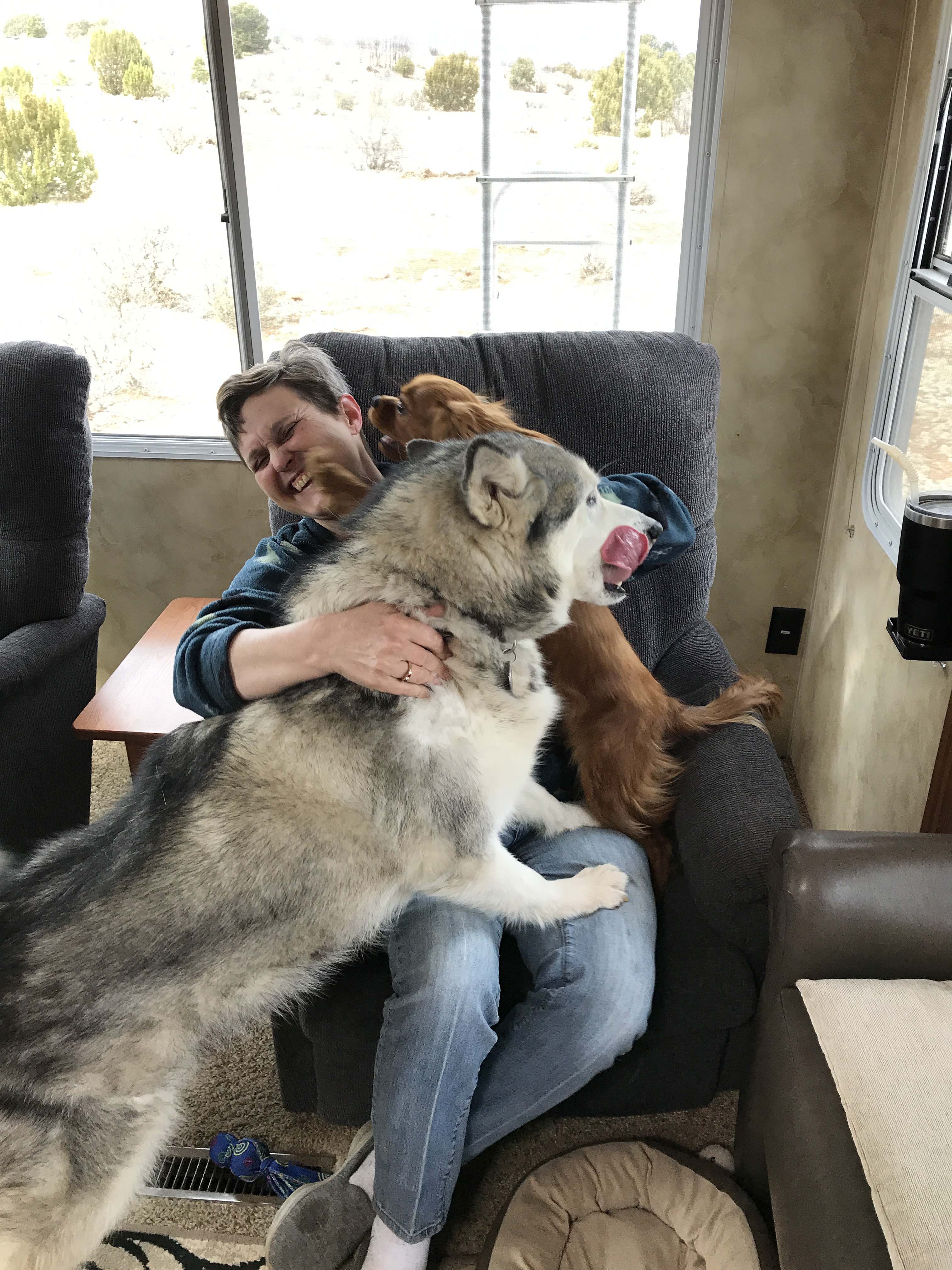We hadn’t seen them since last year in Alaska and I was really happy that their beautiful malamute Peyton seemed to remember me. She got very excited when I came and immediately came over to my rig because that’s how you get treats! I also got to meet Sammy, their new Cavalier. He’s 9 months old and still a puppy and I got lots of his attention as well. Ben made us a wonderful chicken fajita dinner, we had some wine, and talked for about 6 hours straight. When it started to get dark though I called it an early night since we had decided to move on the next day. Non of us minded the colder temperatures, but we really didn’t like not being able to have a fire, so Ben picked a place he wanted to show us and we all had an early start out together in the morning.