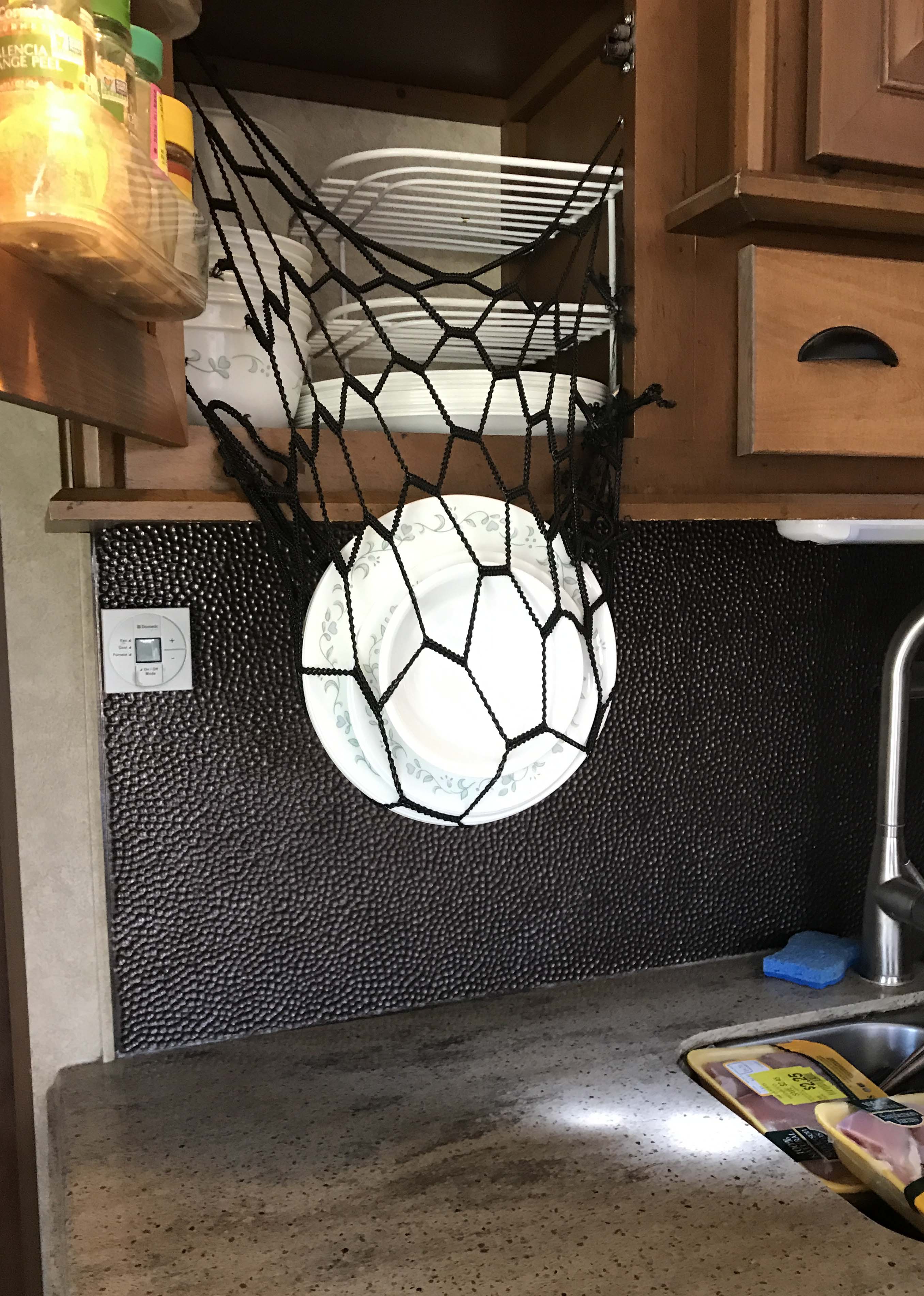 Well, that was certainly exciting. I agree with your comment from your last post, this is what RVing is all about. To get away from all of the noise and clutter of civilization. Beautiful site. My question is…where did you get the netting? I’ve been looking at the bars that go across the cupboards, but that netting looks a lot better. Have fun at the reunion rally and, as always, safe travels.