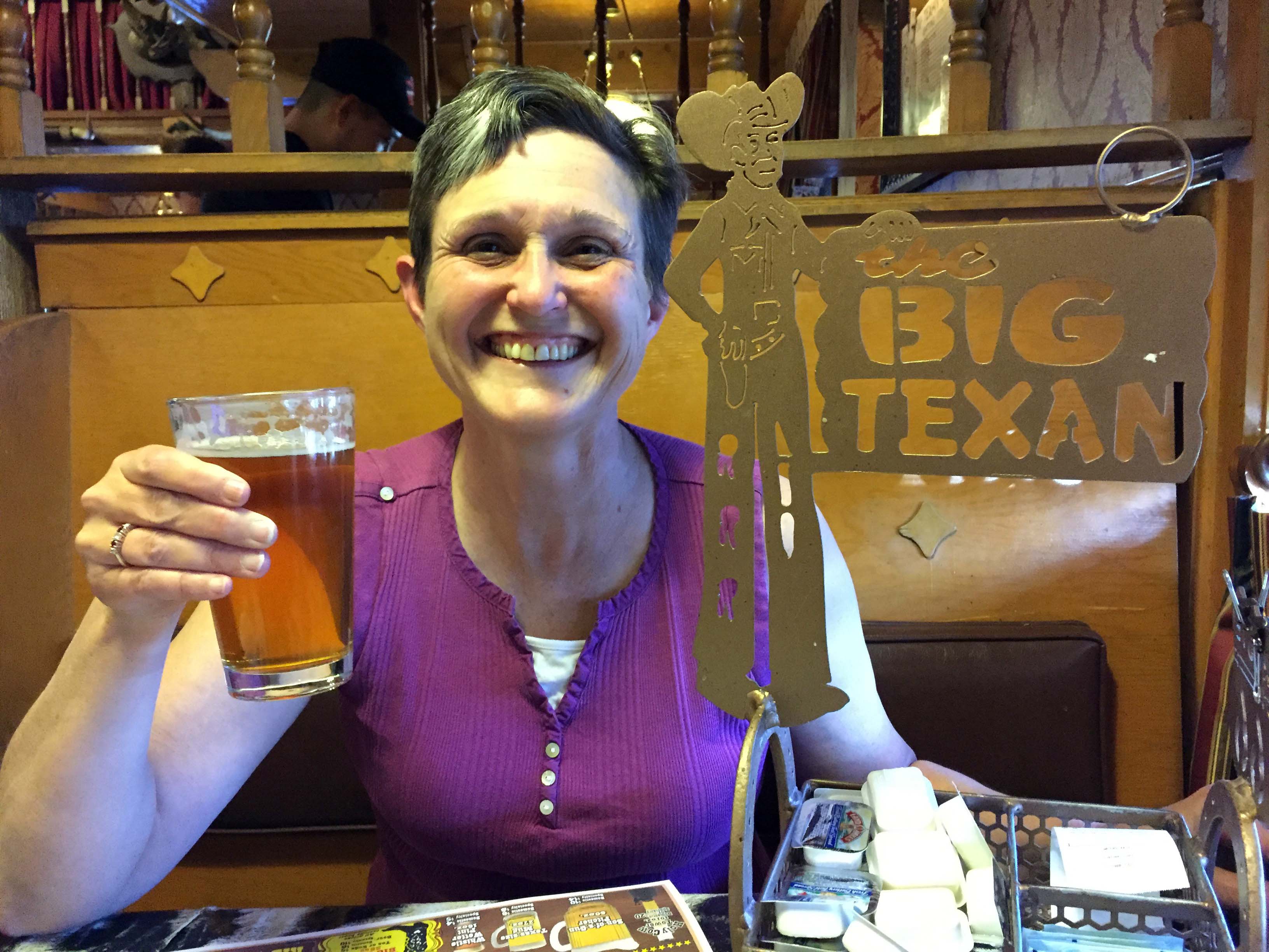 After we got the brakes fixed we headed towards Flagstaff and our friends Ben and Jo, but first we had to stop in Amarillo. We intentionally decided not to do anything for our anniversary in February because we knew our route would take us through Amarillo. The Big Texan is our favorite steak place and this was the third year in a row we were able to stop and have a great steak dinner. We always stay at the Amarillo Ranch RV Park, $32 with Good Sam discount, because the people are very nice, there are always pull through spaces so we don’t have to unhitch, and we get free limo service to the restaurant. We got all of of our favorites, and as usual it did not disappoint!