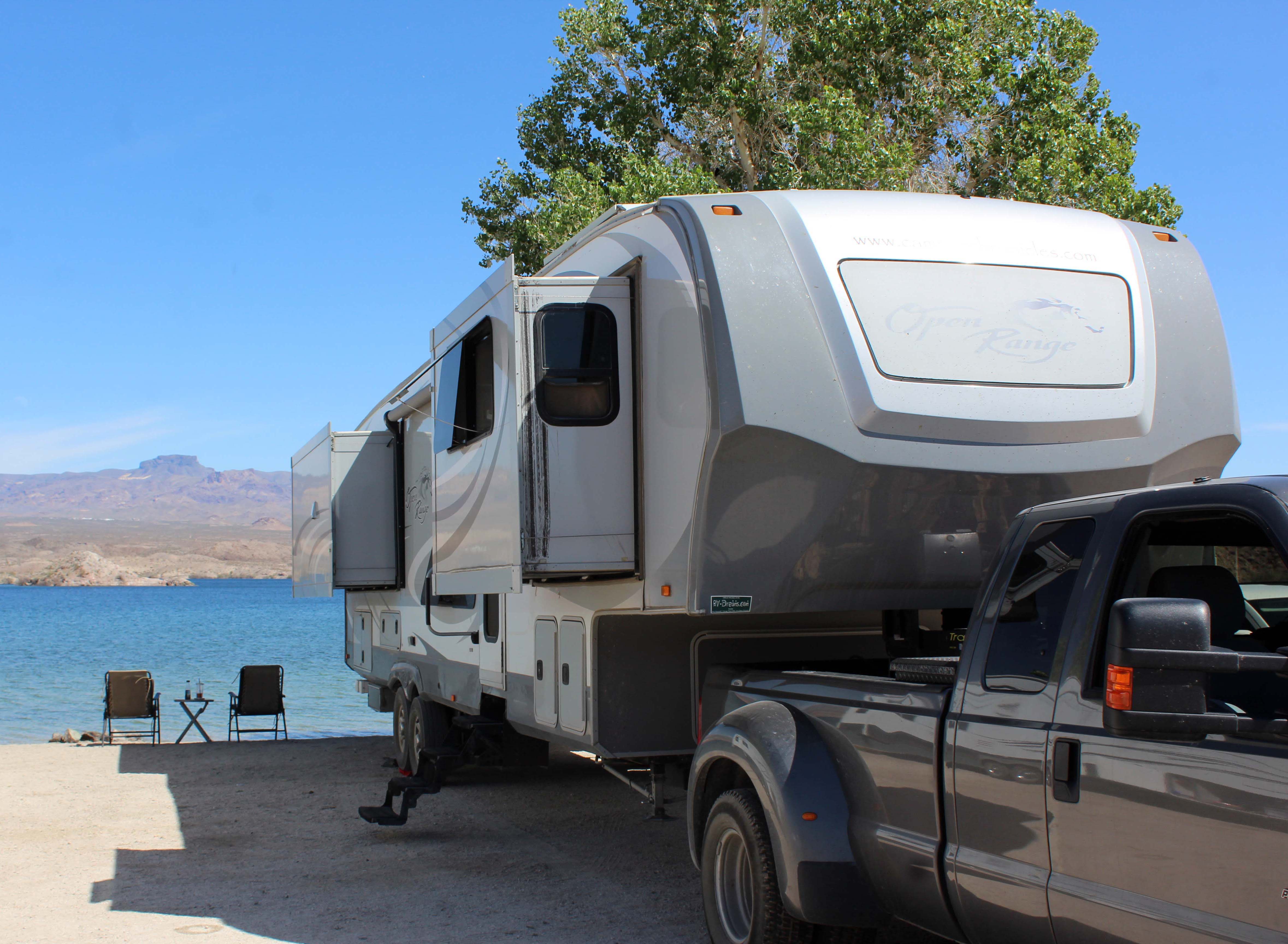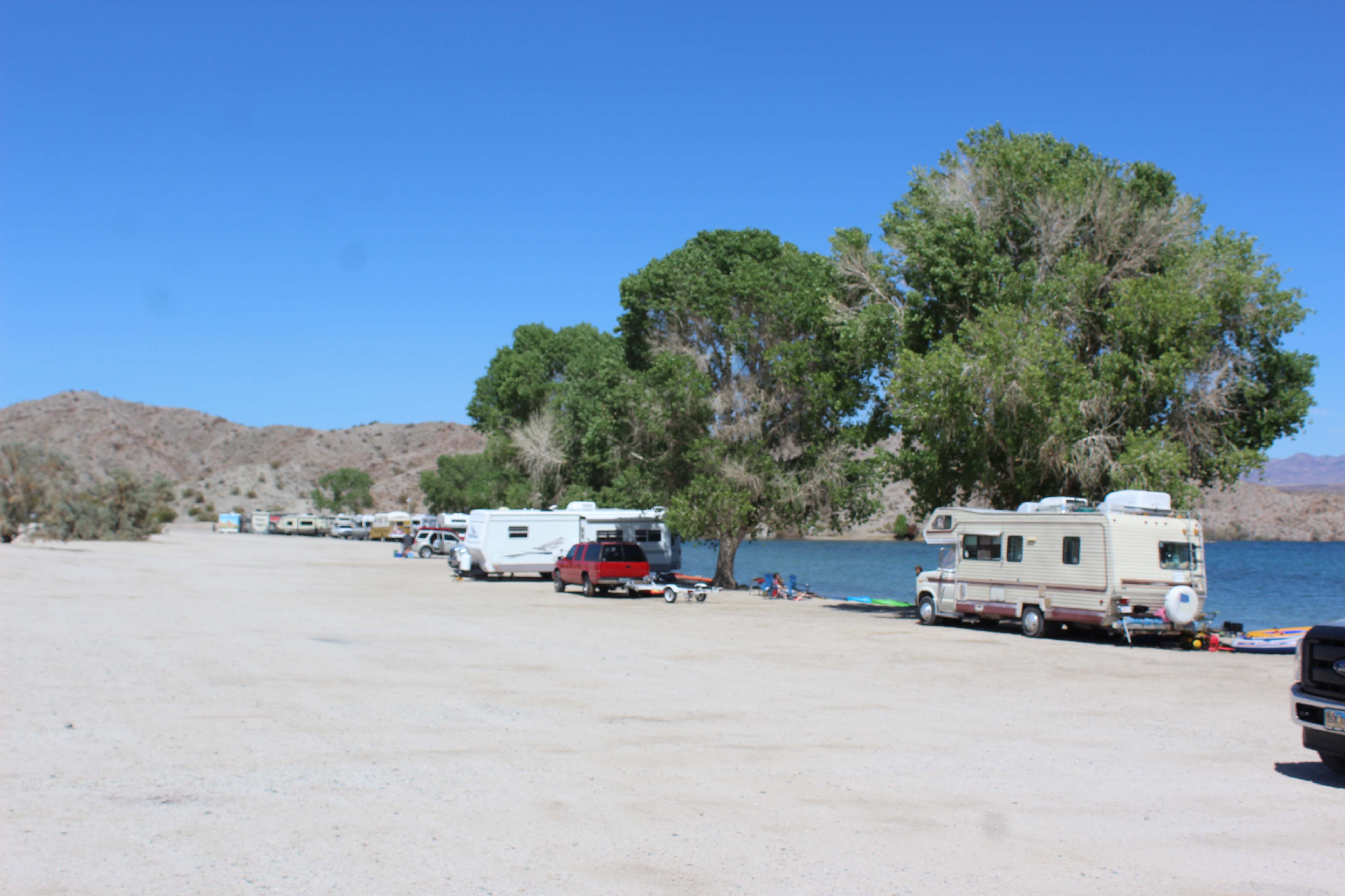 When we travel with people we generally find it is easier to pick a place to meet and then allow everyone to get there in their own time. Bathroom, pet, and lunch breaks vary by couples, and we’ve found it’s easier to just let people do their own thing. Surprisingly, despite the variation, people almost always get to the meeting place pretty close to each other so it all works out fine in the end. Since we were going to a boondocking spot we had never been to, Ben picked a gas station as a meeting place and we followed him the last little bit in. Telephone Cove is part of the Lake Mead Federal Recreation area and just west of Laughlin, Nevada. There is a four mile dirt road and the turn off has a very small sign, so we were glad Jo was directing us via text.