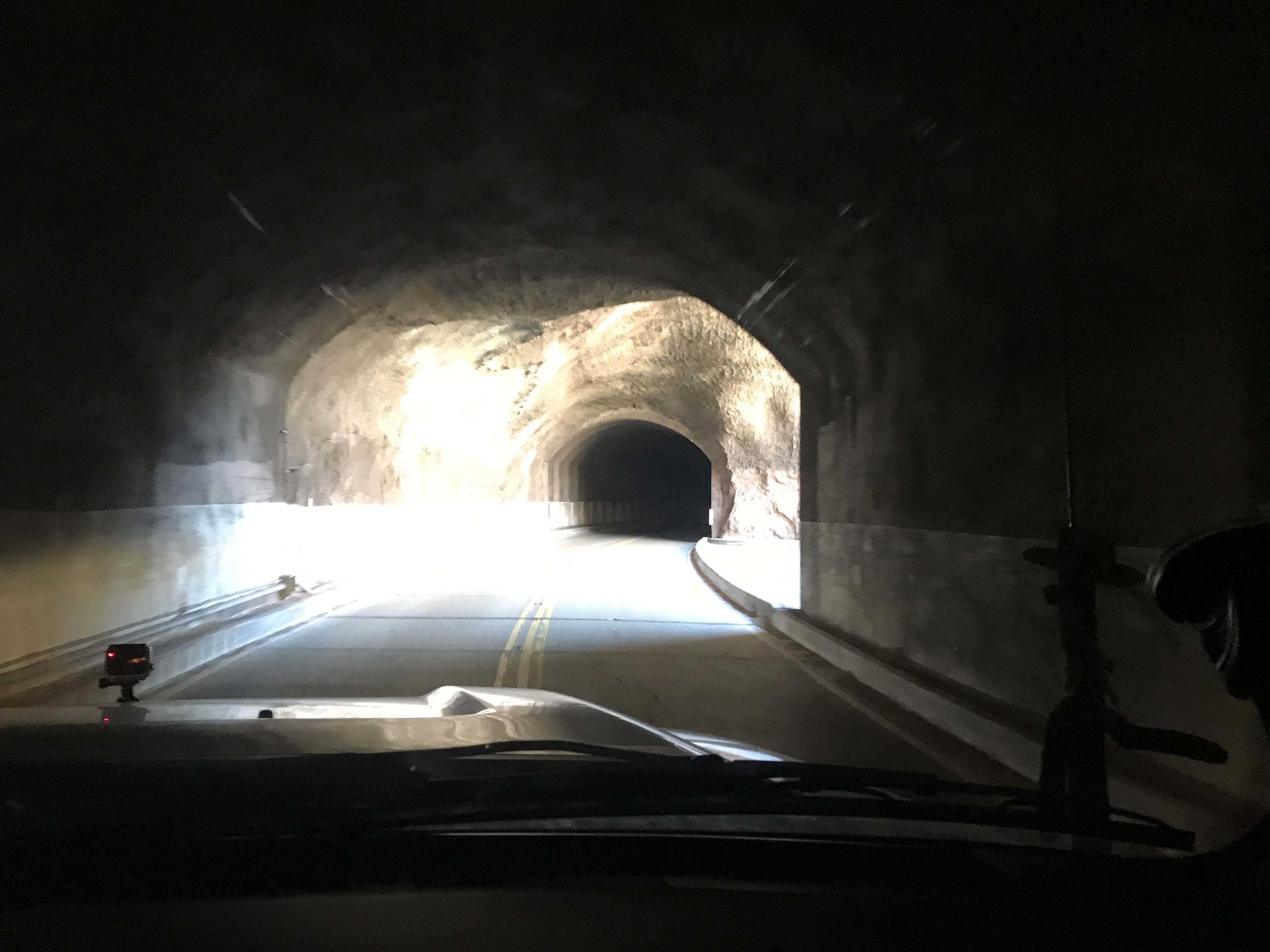 There are a lot of parked cars right when you come out of the tunnel because it is a popular hike trailhead. But the further we got to the other end the lighter the traffic was
