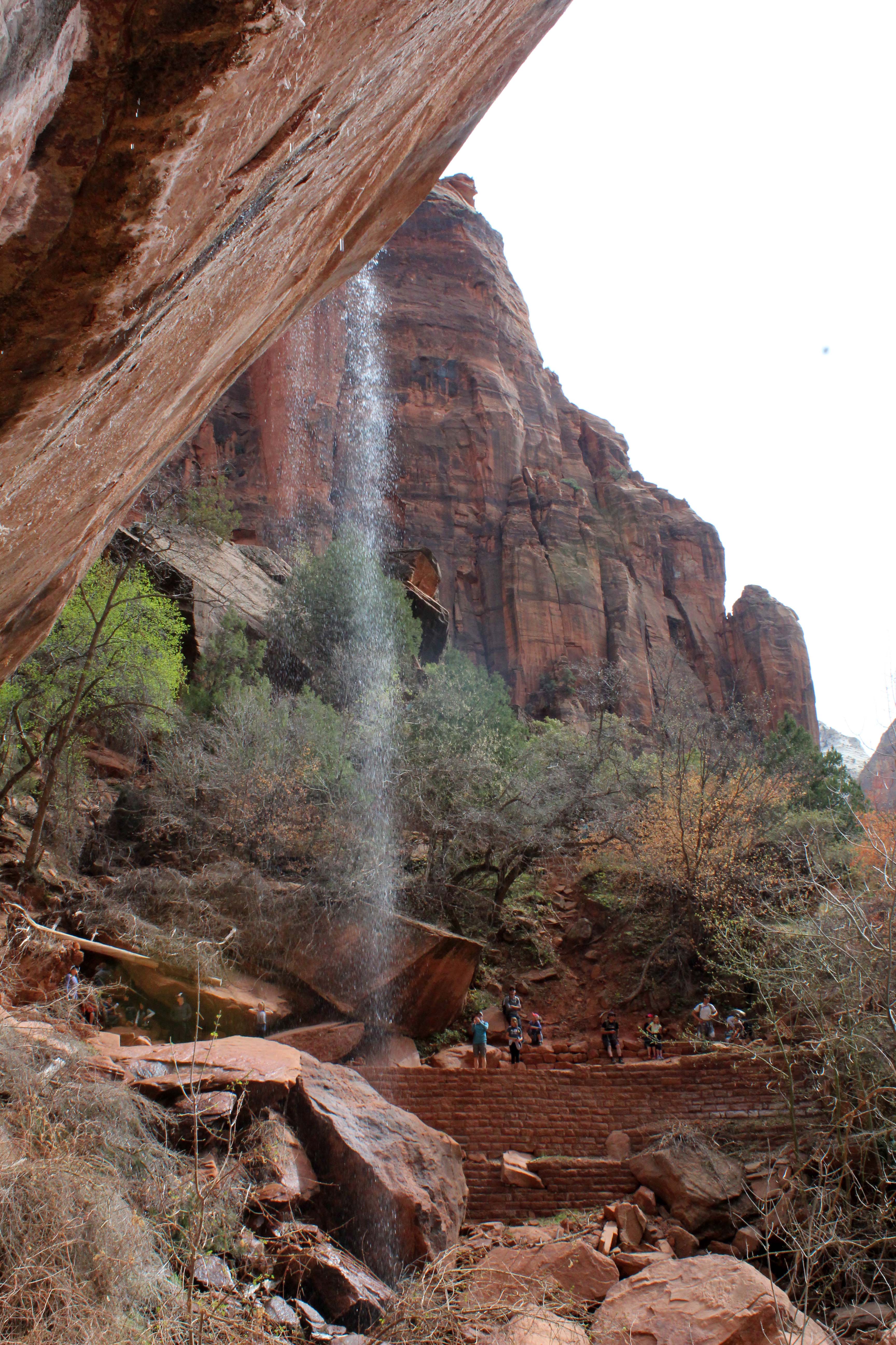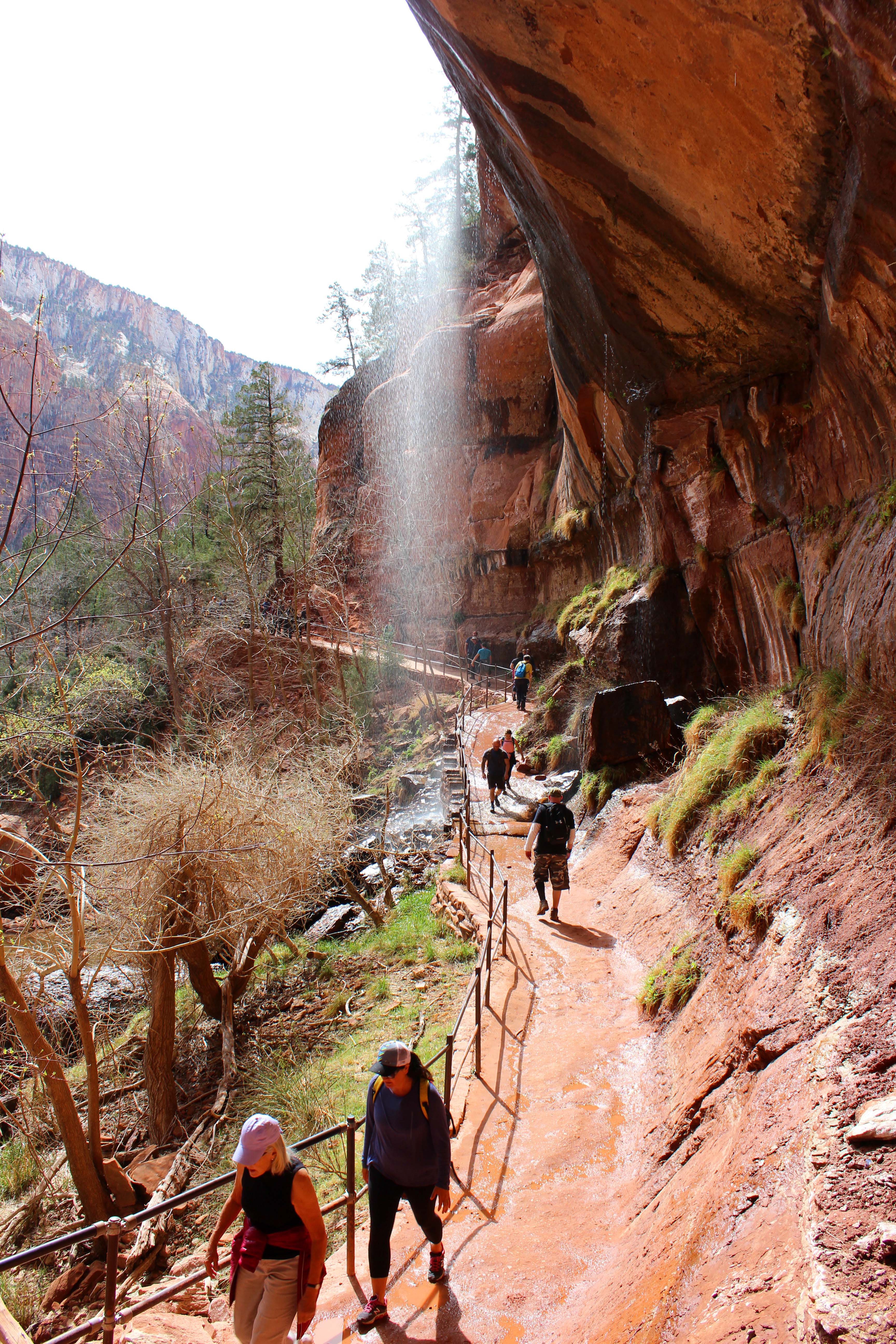 By the time we got on that trail, it was pretty crowded, and despite the 69 ft elevation change it was much steeper than I expected because the trail went up and down several times. Even though it was only 1 mile we were huffing and puffing and between the crowds, steep drop offs, and climbs I wasn’t loving it. Then we turned a corner and everything changed. There wasn’t a ton of water flowing down, but it was still very special and had the added benefit of being able to walk under the waterfalls. It was a short distance from the lower pool to the middle pool, and that’s where we stopped, and we spent a ton of time taking pictures and enjoying the water spraying on our face. I really really liked it, and it was totally worth the climb.