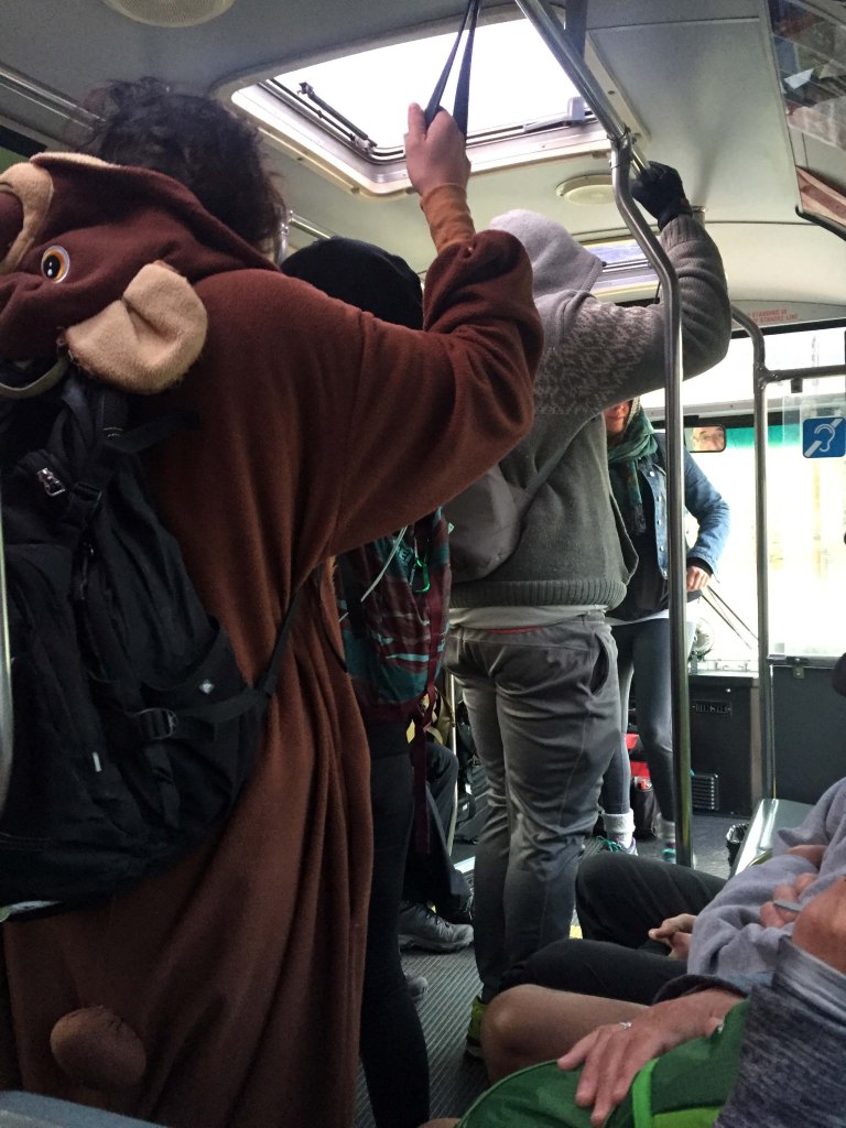 All kinds of serious hikers on the bus that early in the morning, including one very large chipmunk.