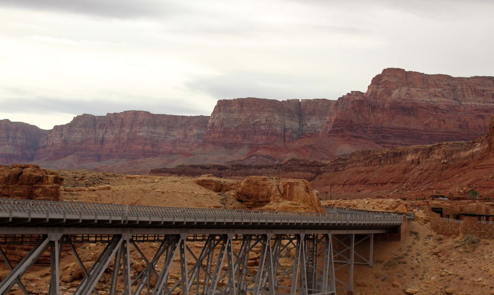 We kept driving and saw a sign for the Navajo Bridge and without having any idea Lee turned in. This is why you should always stop, because I had no idea that some pictures I had seen came from here. It was such a great surprise because you can’t really see it until you walk through a little gate and we took some amazing pictures.