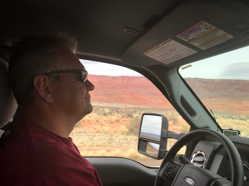 The Vermillion Cliffs were really red and we kept seeing signs for Cliff Dwelling. I thought this was ancient ruins, but it was actually a really cute little town and we ended up buying diesel there for only $3.19, which was cheaper than many other places we had seen. I should also mention that although it was 85 degrees it was perfectly comfortable in a T-Shirt and jeans and the nice breeze really made for the perfect day.