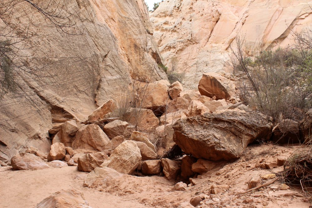 On the way back we stopped at the Cottonwood canyon and although the hike was one of the best we have ever been on it was much harder physically than we expected.  Part of the problem was walking in sand in many sections and another problem was piles of rock we had to clamber over at both ends. You decide for yourself if it was worth it though, and if nothing else I recommend starting at the north entrance and walking at least to the arch if you don’t feel you can do the whole thing.  The best part was on a Sunday we only saw three other single hikers, and it really felt like we had the place all to ourselves.