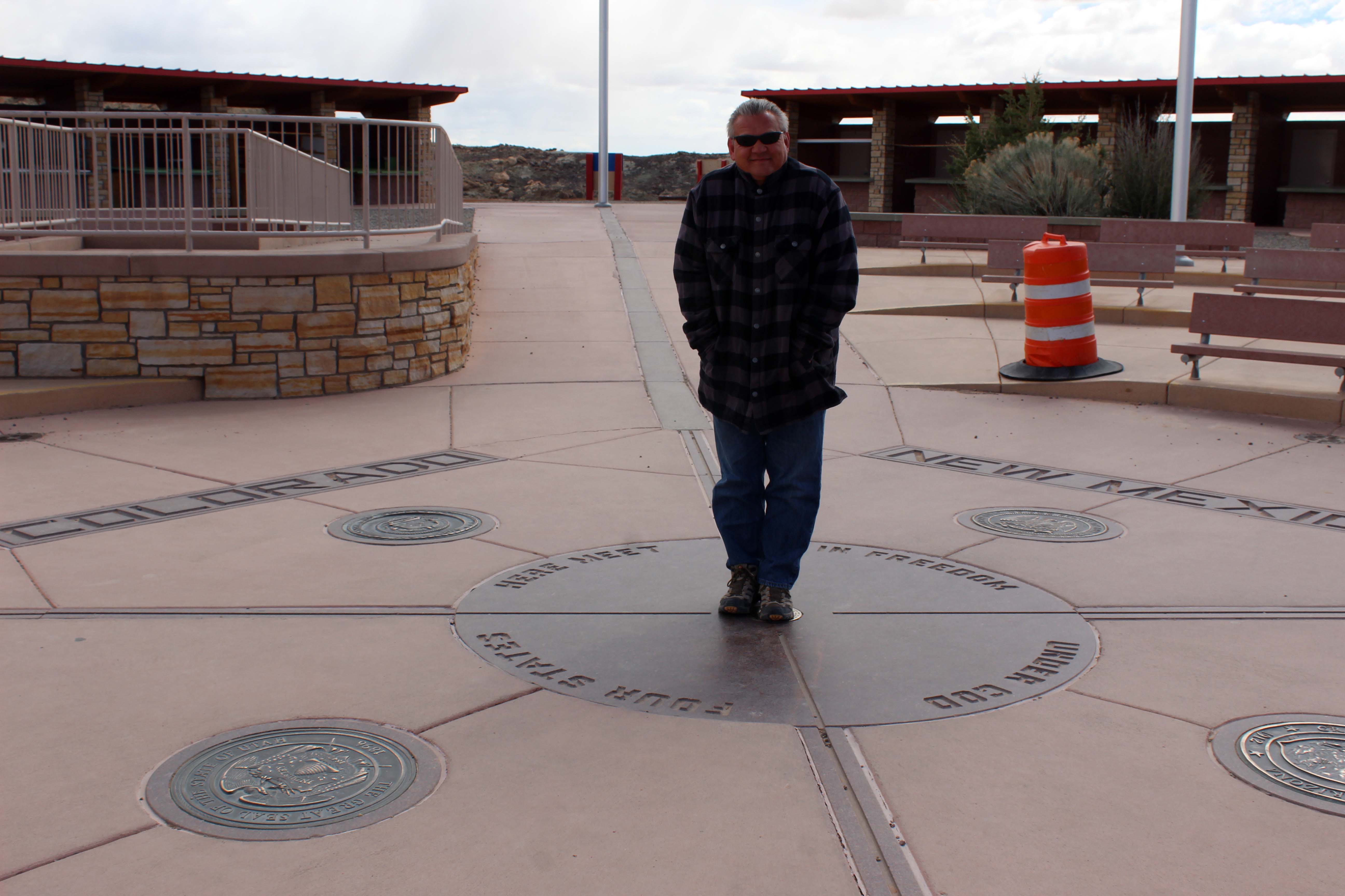 (So here’s the deal with the Four Corners monument, and hopefully this won’t ruin your day. The Four Corners monument is not where it’s supposed to be. It is around 1800 feet east of the actual location where the borders of the four states meet. Personally I still enjoyed the experience, because it’s just cool. Had I known this information while I was there, I would have insisted that we ALSO take a handful of pictures in the actual location. Partly because it would have been funny, but also partly because what’s accurate is accurate. I have read a LOT of information about this, and it bothers me more than a little that the prevailing opinion seems to be that if everyone agrees it’s in the right place, then it’s in the right place, and the longer people agree, then the more solid that “fact” becomes. I am genuinely distressed by this way of thinking. The longer you are convinced that a wrong thing is right, does it not make it less wrong. The boundaries of the states are based on longitude and latitude, and those lines intersect at a real, actual spot. The fact that the monument was built 1800 feet east of that spot doesn’t move the spot, even if 1800 feet is minute in the scheme of long/lat. And it also doesn’t detract from how awesome and cool and kitschy the monument is. It’s not like I need them to change the name of the place (along with all the T shirts and stickers) to “1800 Feet East Of The Four Corners Monument”. They can keep calling it what they call it, I don’t mind, as long as we all understand and agree that it’s close enough. But it’s still off by 1800 feet, and that matters just as much. – Lee)