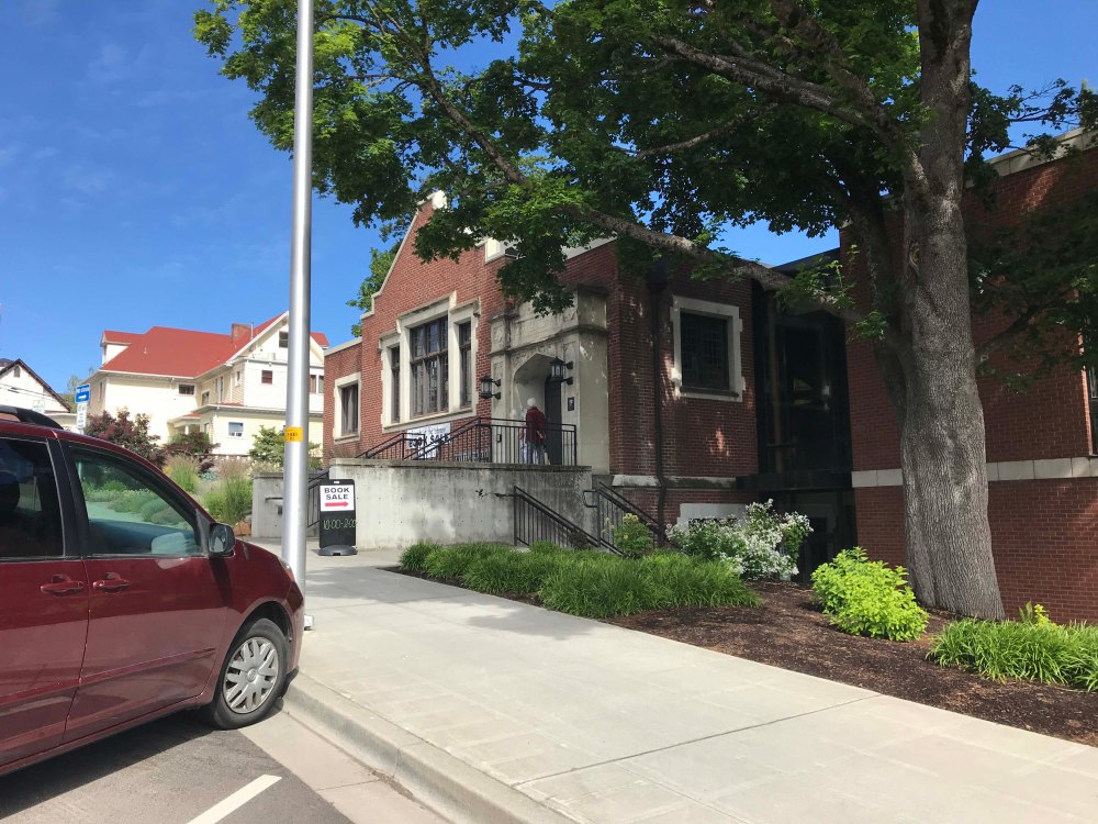 After seeing the view I arrived at the library at 10:02am and found free parking. I wasn’t sure what to expect but was thrilled to learn that the cost was only $2 a bag. I plunked down a $10 bill and pretty quickly filled up two paper grocery bags full of recipe books. After that I saw they had lots of movies and grabbed a bunch of those to add to the little movie library the office has for the staff. They didn’t have much in the way of books, but I did grab several about hiking in the area (which I donated to the staff library) and one absolute treasure called Romance of Waterfalls. It’s an older book and a little out of date, but has terrific descriptions of the hikes. Plus for every waterfall it recommends kissing spots, which I loved!!