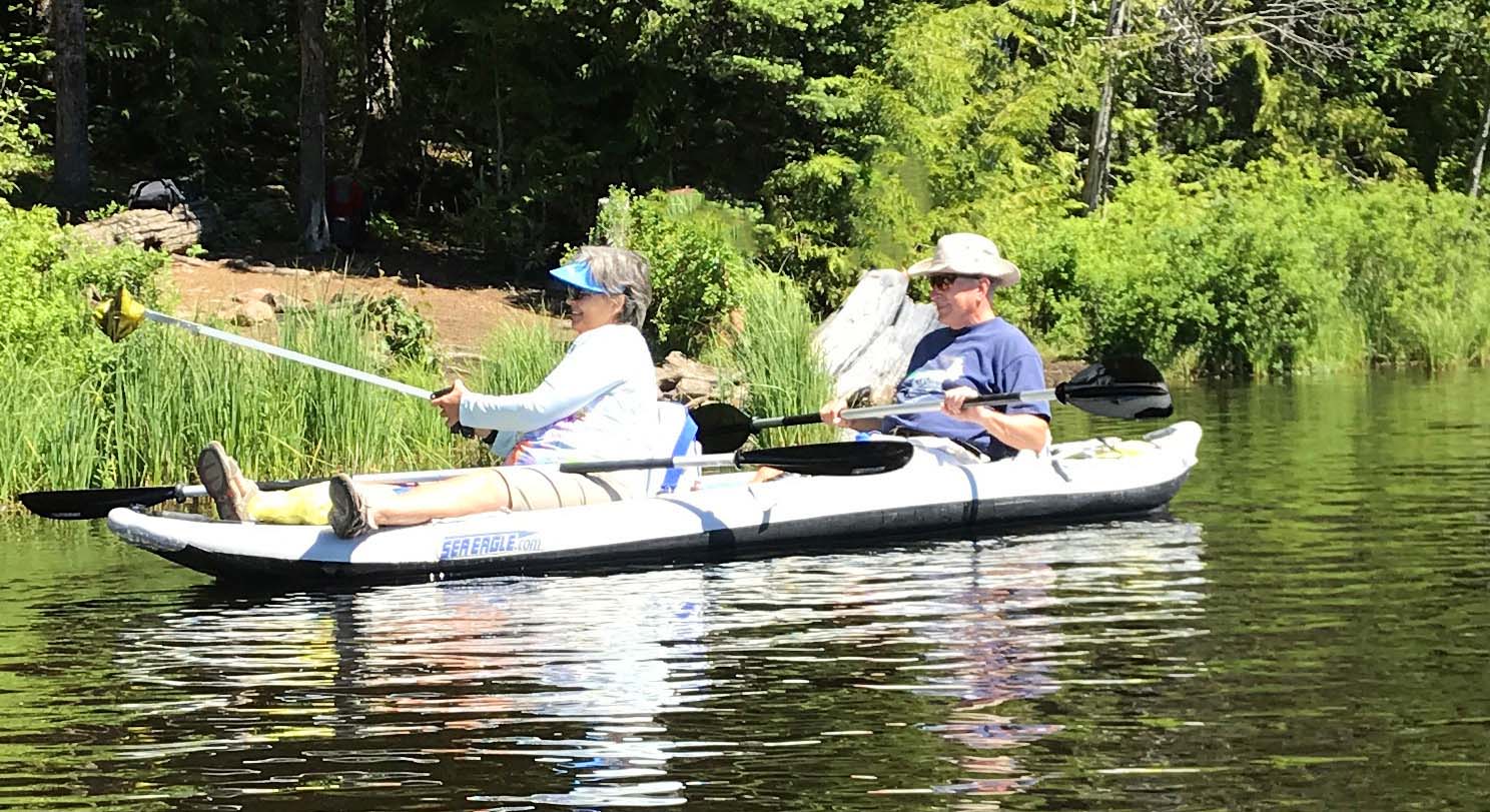 There is so much to do in this area, I had thought long and hard about what activities to pick for our days off and finally settled on a paddle at Trillium Lake. We have had an inflatable boat from the very beginning, and we purchased it after watching a demo at our first RV-Dreams rally. We don’t get to use it much, but we are always glad we have it, and were especially glad we had similar boats when we discovered we were missing our pump adaptor, but no worries, we could use Howard and Linda’s. We drove the 16 miles to the lake and Howard turned to me with a grin and said, “Nice view.”