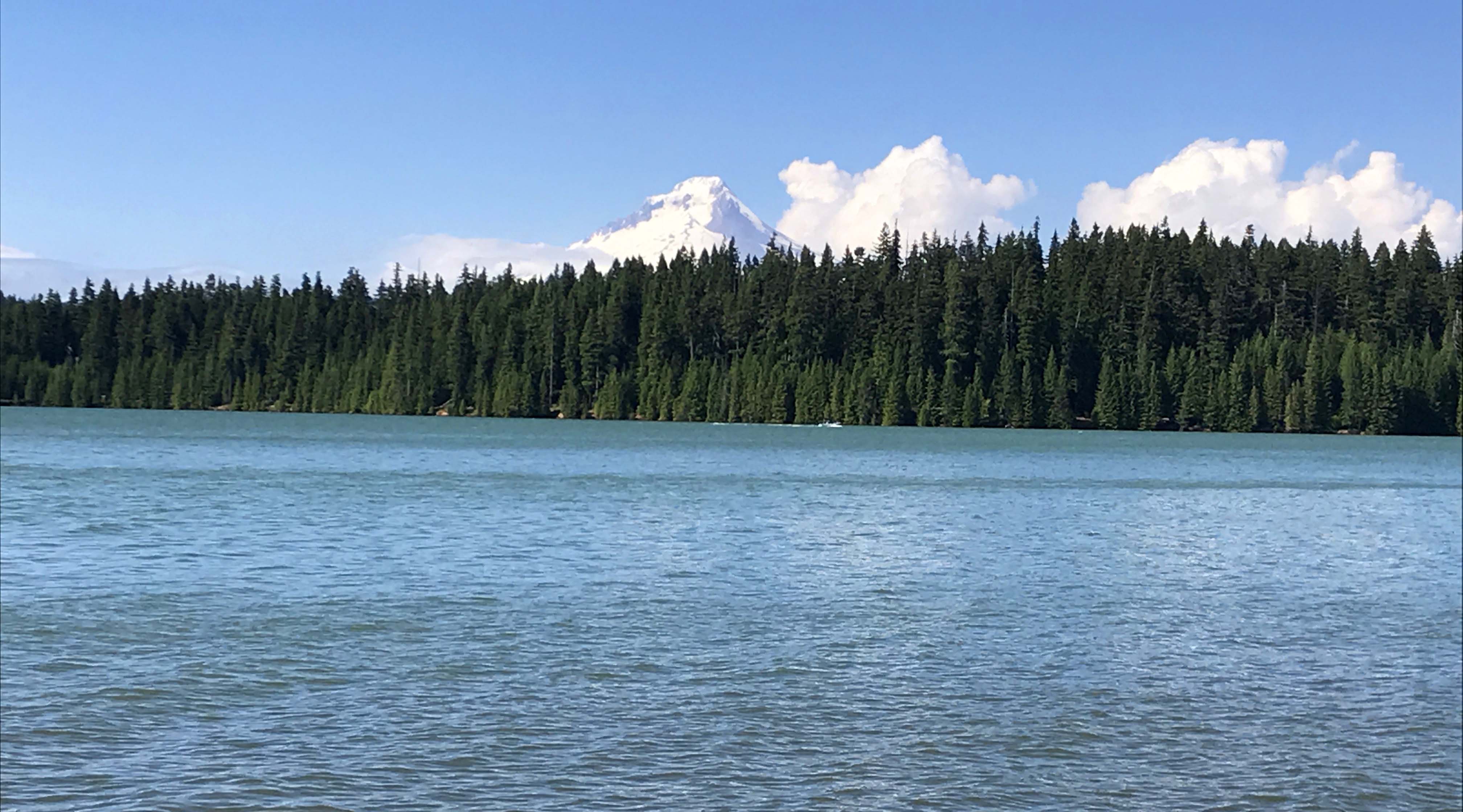 The drive up was pretty, and the temperatures dropped from 81 degrees to 67 degrees with the relatively short 6 mile drive. I was surprised by how much activity was going on up there on a Wednesday, but since there was still some snow, several people were skiing or snowboarding. That was an interesting change going from paddling in barefoot to seeing people in full snow outfits, and that’s part of the fun of living out here in Oregon.