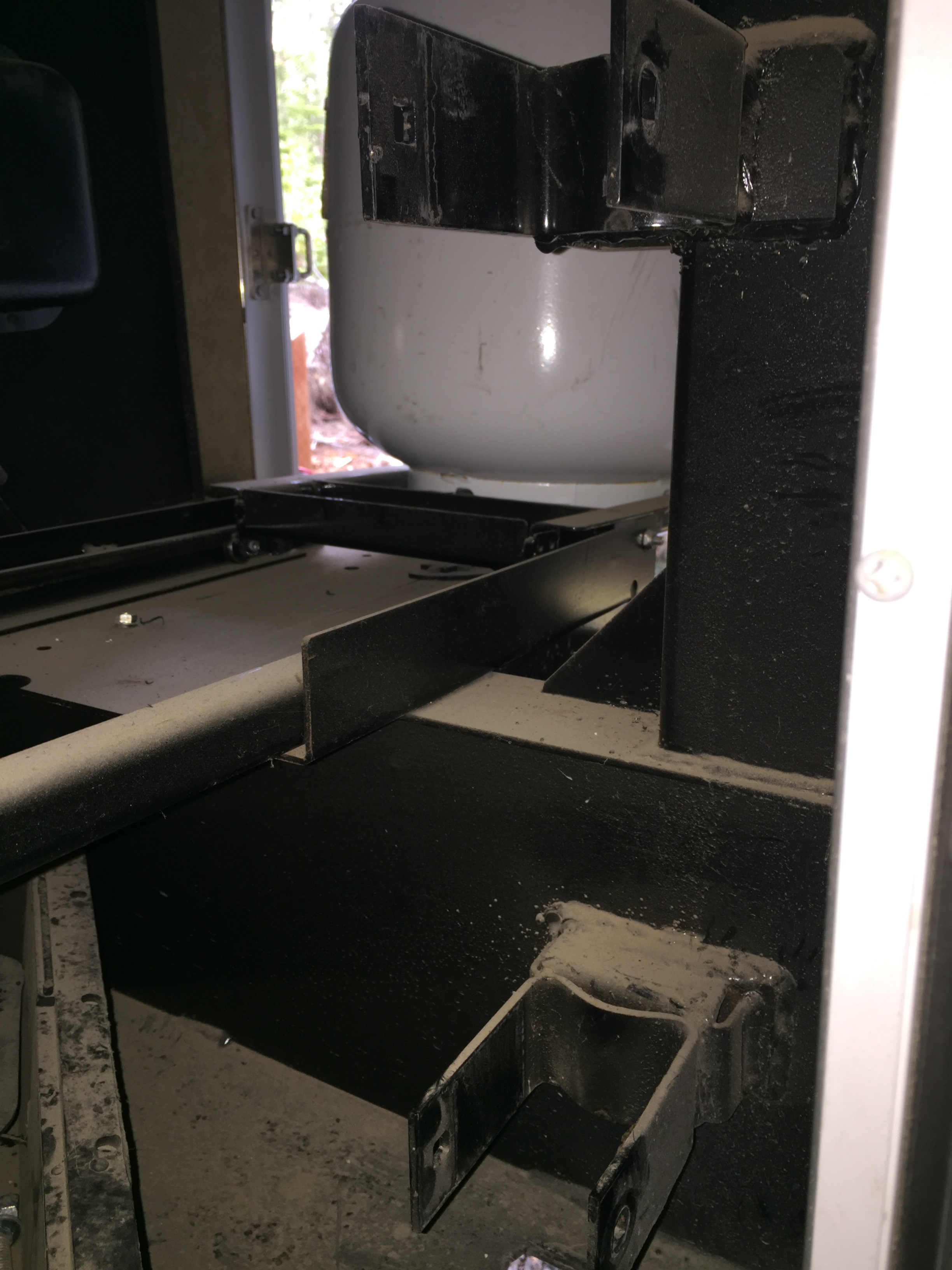 Once everything was put back together and tightened down and the wiring harnesses were reconnected, it all worked just like it’s supposed to, with 100% less falling down. It still bothers me how high the front of the rig has to be in order for us to be level at this location, but there’s nothing we can do about it this year, maybe next year.