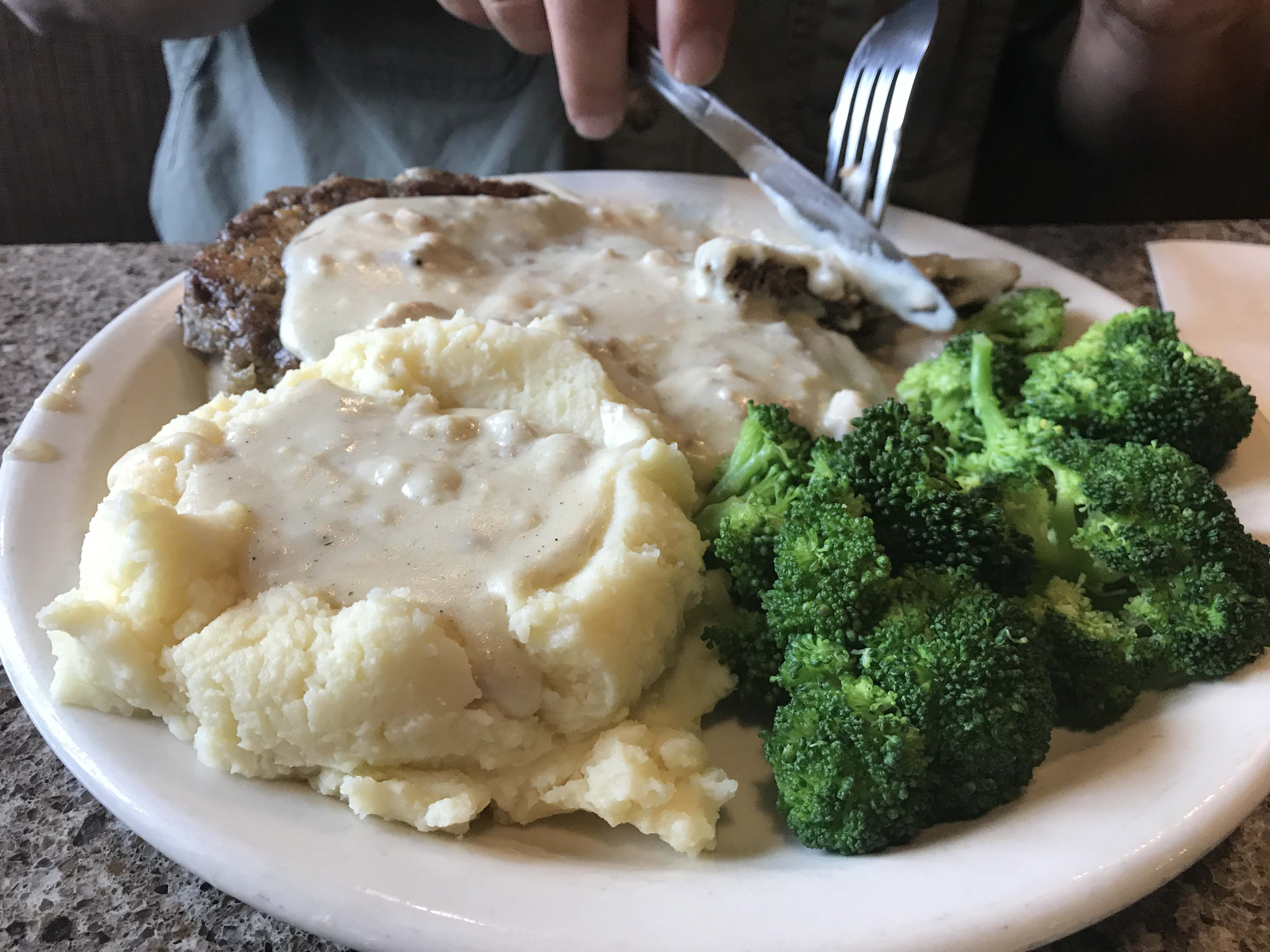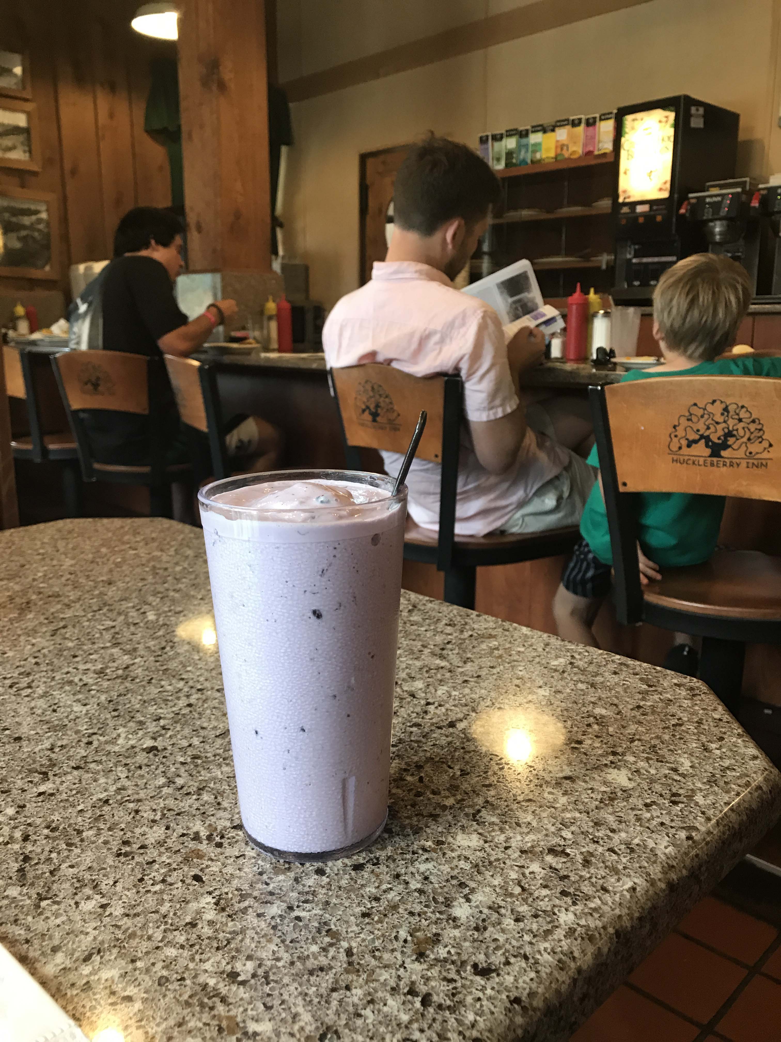 Then Lee and I actually got to go out an eat a meal one night which was cool.  I had a wonderful Huckleberry shake at the Huckleberry Inn and Lee had a huge country fried steak.