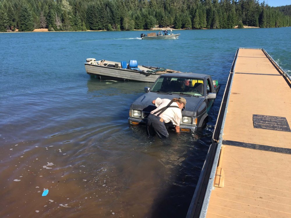 We also had a camper with a heart attack (they were life flighted and are fine), missing kids (we found them), a guy back his truck into the lake.  Yes I am not making that up..not really sure how that happened but here’s the picture.  Our head of security winched him out, and yes the entire bed of his truck (and the drivers seat) was full of water.