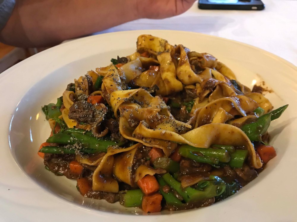 That encounter was amazing and pretty much dumb luck since we took the wrong turn and once again the lack of traffic on the roads made it possible.  The lodge itself was OK, and dinner was pretty good, although the service wasn’t awesome.  Lee had and Elk chili noodle dish and I had prime rib, which I actually really liked.  It was a nice way to top off the day though, and the gift shop up there was pretty terrific.