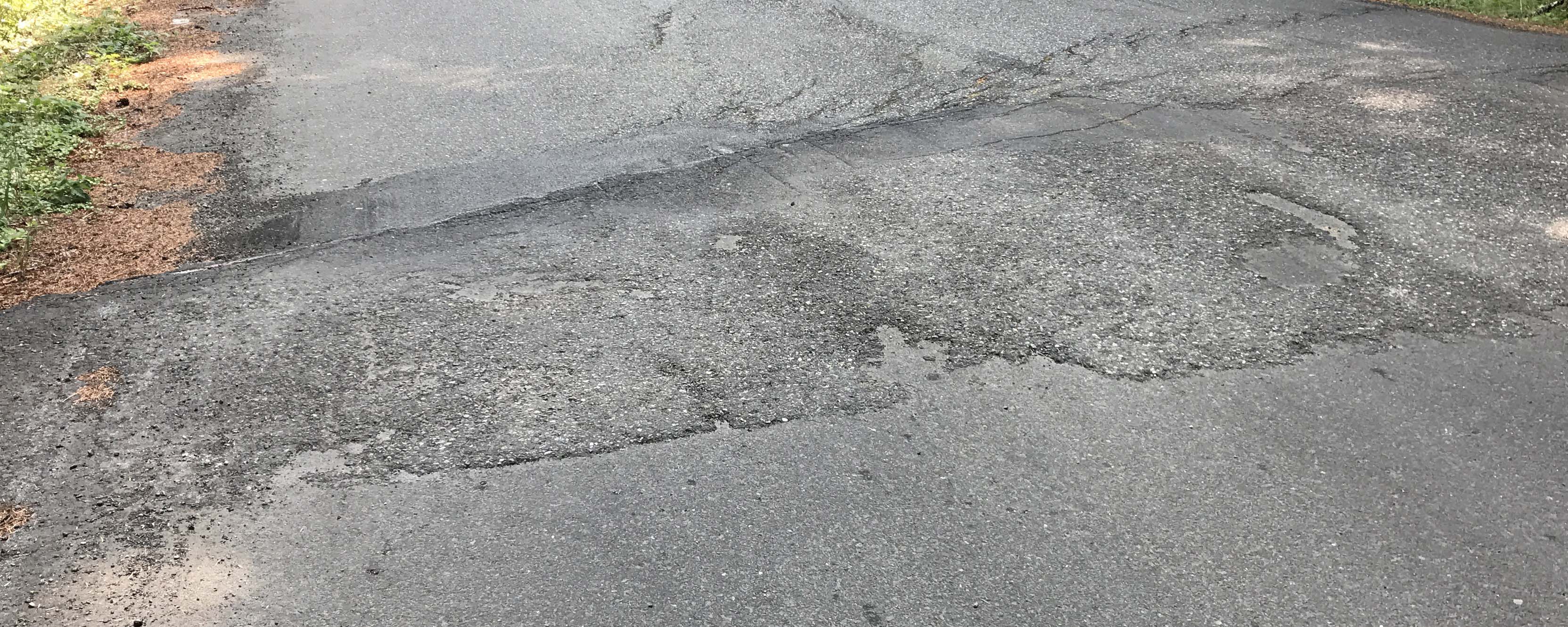 This was actually worse than it looks, and there were MANY of these. The area to the left of the fissure is a good 9 inches lower than the right.