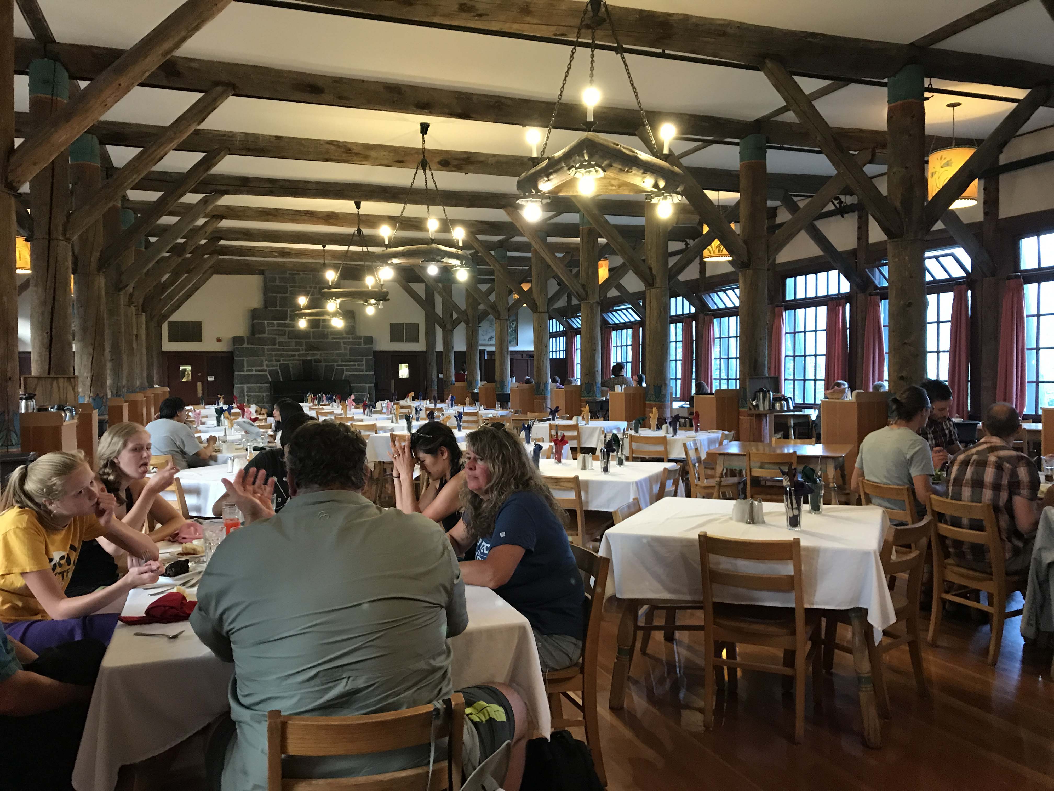That encounter was amazing and pretty much dumb luck since we took the wrong turn and once again the lack of traffic on the roads made it possible.  The lodge itself was OK, and dinner was pretty good, although the service wasn’t awesome.  Lee had and Elk chili noodle dish and I had prime rib, which I actually really liked.  It was a nice way to top off the day though, and the gift shop up there was pretty terrific.