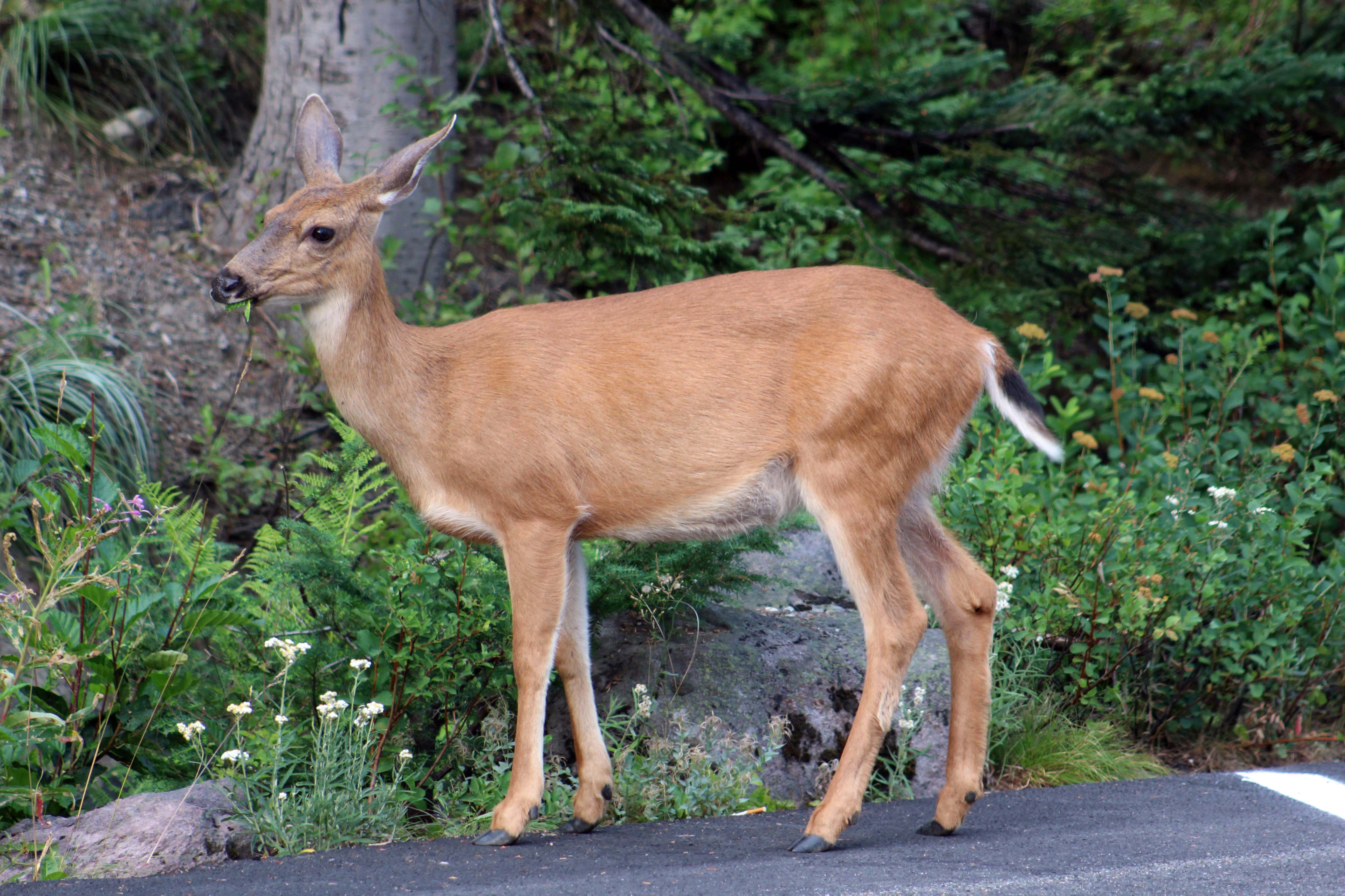Turns out that was an absolutely wonderful idea, and I am so glad I agreed.  For one thing at 4pm crowds were minimal and as it got darker, more animals came out.  From this point I am going to show you what we saw with the pictures, but I think you will agree that staying inside the park and exploring after 4pm is a great way to go!!   That choice not only salvaged the day, but taught us something as well, and helped reconnect us once again to the true purpose of this lifestyle for us.  By the way, we drove into the Stevens canyon Entrance (no one was manning the gate so entrance was free) and worked our way “backwards towards the Nisqually entrance.