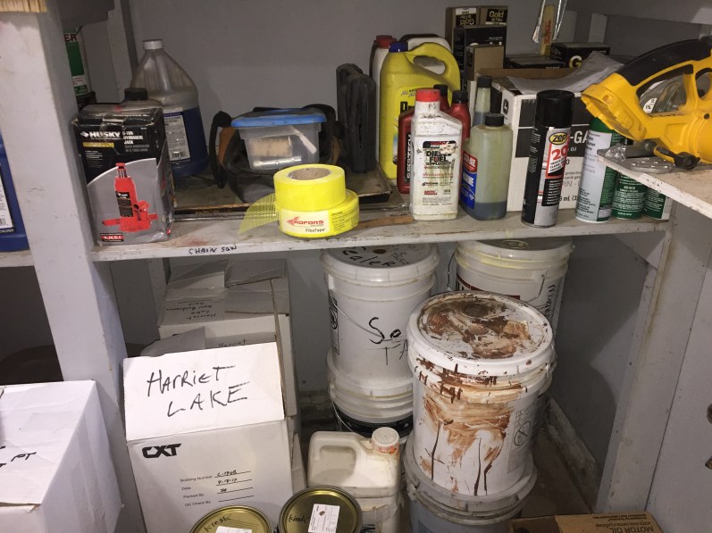 (There was also a lot old paint in spray cans, pint, quart, gallon and five gallon cans. Some were nearly empty, and some were so old they were unusable. Again, someone had kept them all together, but there was also other stuff mixed in. finding anything was a pain. – Lee)