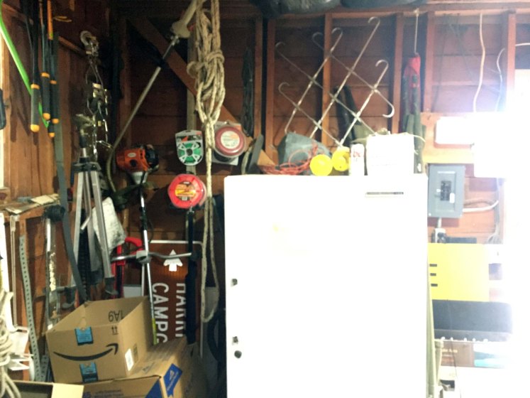 (And there was lots of this. Things hanging from the walls by nails, and bits of wire, and just sort of leaned against the wall and stacked up. Finding and getting things was quite the chore, and usually involved things falling and getting knocked down or over. – Lee)
