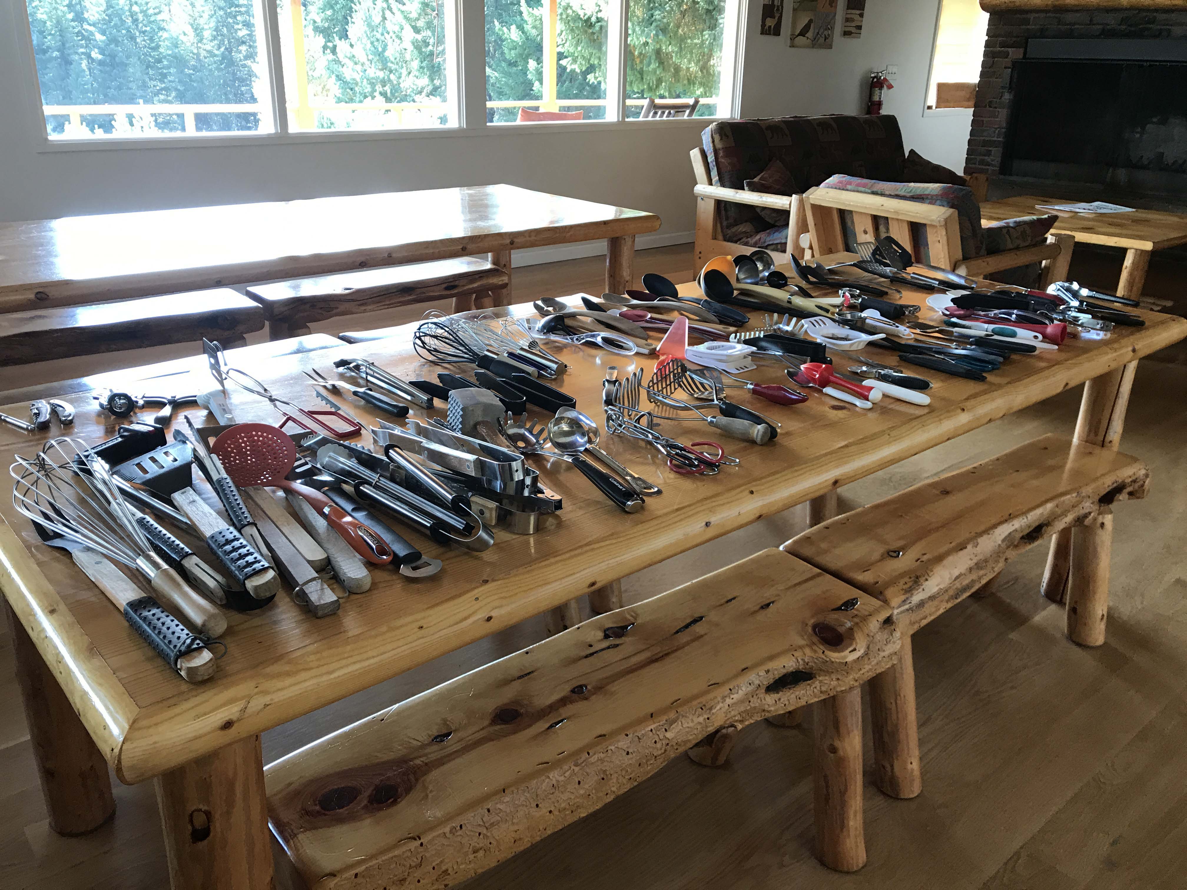 In addition to Lee finishing the workshop, Fred and Helen cleaned out the lodge and looked for missing items or duplicates. People bring and leave things all the time, so we had a huge amount of extra cooking items. This was kind of fun and we divided some of them up and donated the rest.