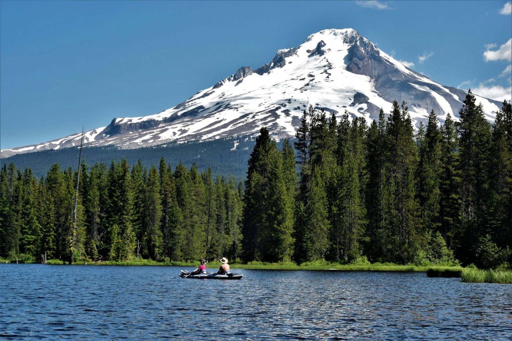 Kayaking at Trillium Lake with Mt. Hood in the background with Howard and Linda was amazing – June 2018