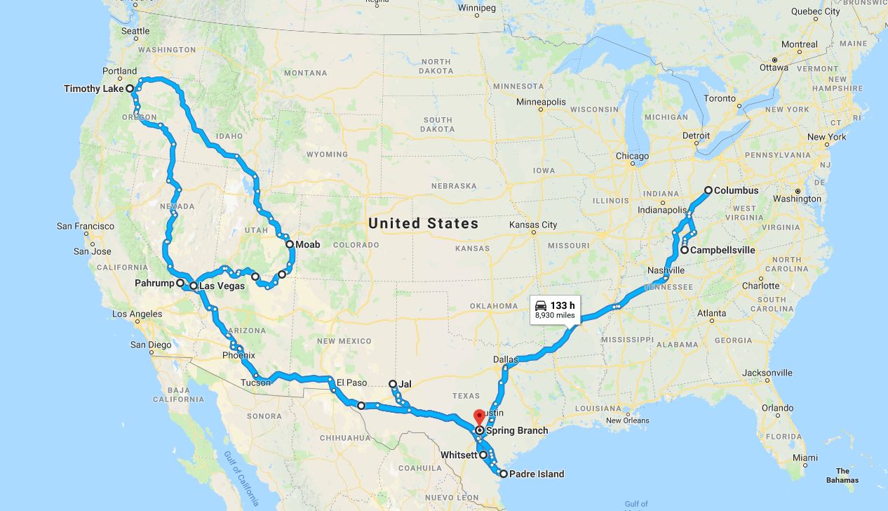 As always, I’ll start with a map of our travels and this time I thought it would be interesting to show all four years together. These maps aren’t totally perfect, but basically show the routes we have taken and the places we have been. This is what it looks like when your family is on the east coast but you want to explore out west. Lots of criss-crossing the country!