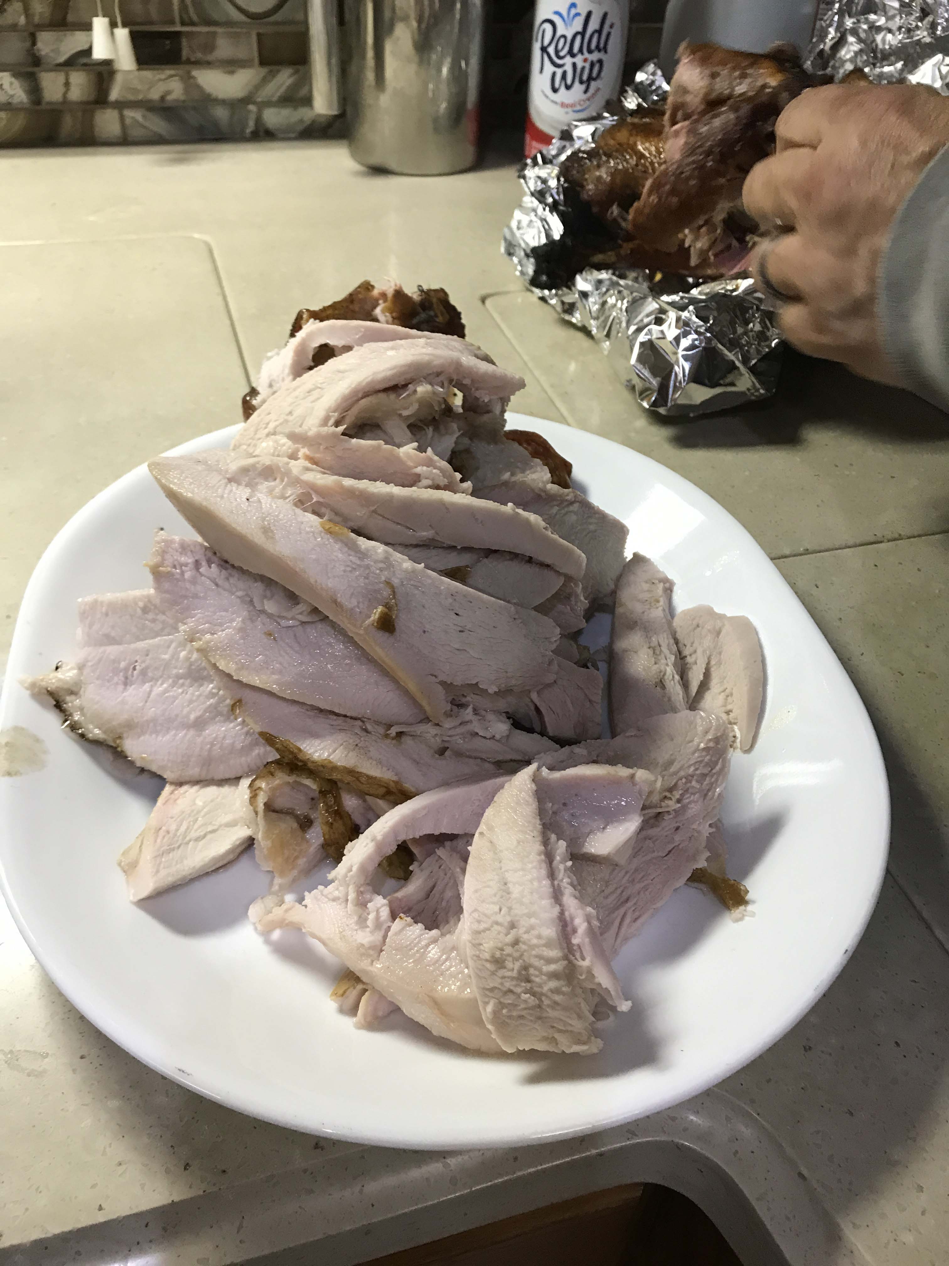 They split the turkey before putting it on the smoker. We all thought it might be dry but it was crazy moist and delicious