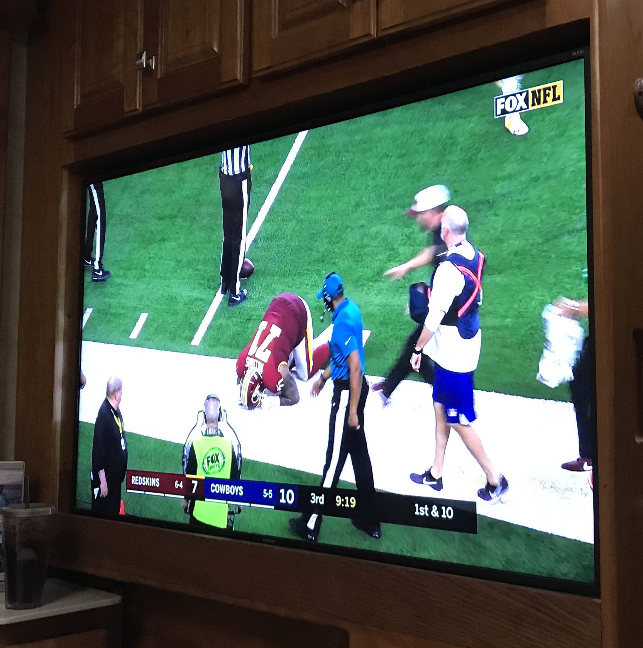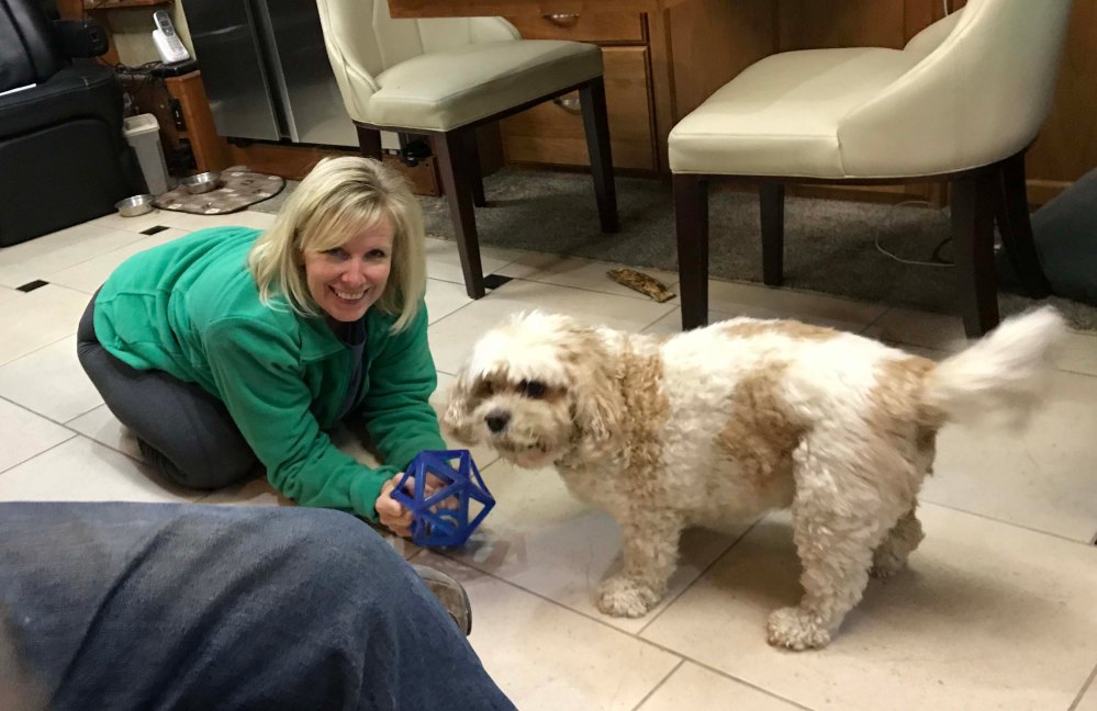 It wasn’t all cooking, because I was able to get a strong NBC signal and watched the Macy’s Day parade and then my absolute favorite, the Dog Show! It was Jack’s first experience with seeing dogs on TV, but apart from the occasional growl (he didn’t like the German Shepherd) or intent interest (he thought the Shih Tzu was really cute) he mostly just chilled. He and Hobie were in and out of the rig all day and were playing a game of sorts with a piece of rawhide. Jack would take it and not let Hobie near it, and as soon as Jack lost interest Hobie would grab it and take off with it. It was pretty fun to watch and that piece of rawhide was back and forth between our rigs throughout the day until finally it got chewed up! There was also lots of play time and a surprisingly good Cowboys/Redskins football game.