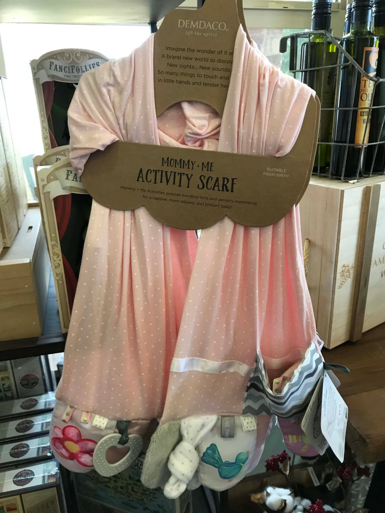 The gift shop also had other items and in particular I loved this mommy and me activity scarf that had things for your kids to play with on it. Really ingenious and I had never seen anything quite like it