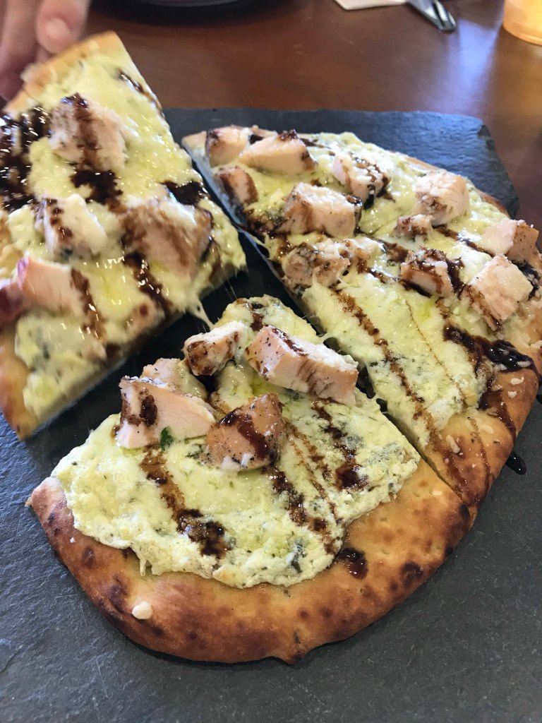 Despite it being Black Friday there was a bit of a crowd and a tour was just finishing. We learned that tours were free this weekend because of the holiday, so even though it was a 30 minute wait we decided to stay. While we waited, Cori ordered a chicken and cheese pizza, which we split, and we checked out the really nice gift shop. Lots of their products were on sale, and of course they had several tasting areas set up. They also had a nice selection of imported balsamics which were infused on site with a variety of flavors. In general I am not a huge fan of balsamic vinegar, but these were really nice, and I loved the raspberry infused in particular.