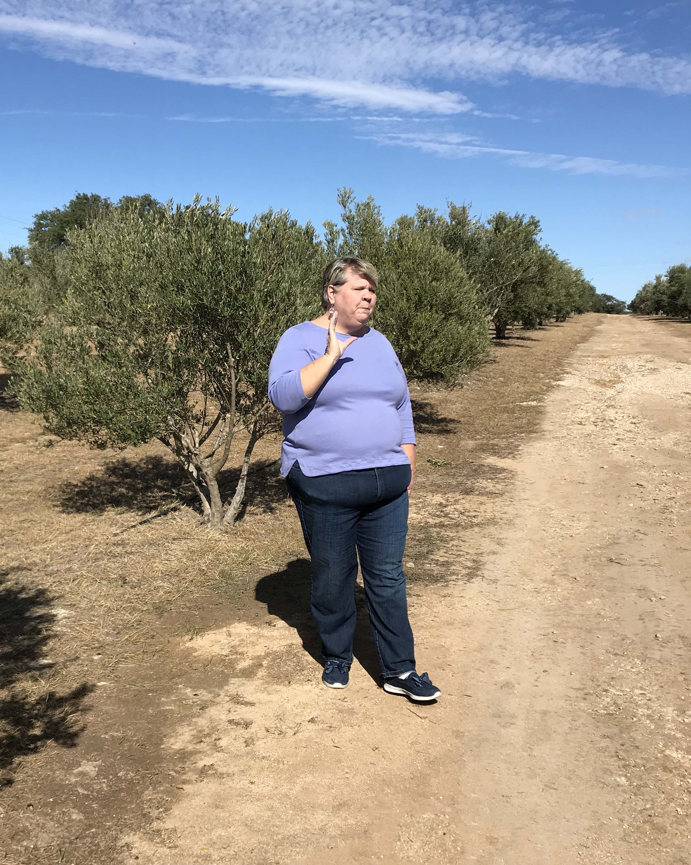 Before we knew it the tour started, and we went into a large tasting room and learned about the history of the company, which I found fascinating. This company was the first organic olive grower in Texas and when they brought in trees from California they did very well because of the limestone soil in this part of Texas. When the owner initially started he really had no idea what he was getting into, but through hard work and some luck he did very well. They sell over 40,000 bottles a year and were so successful that they bought a second farm down near the Rio Grande with many more trees. The original farm was still working and we left the tasting room and walked out into the orchard.