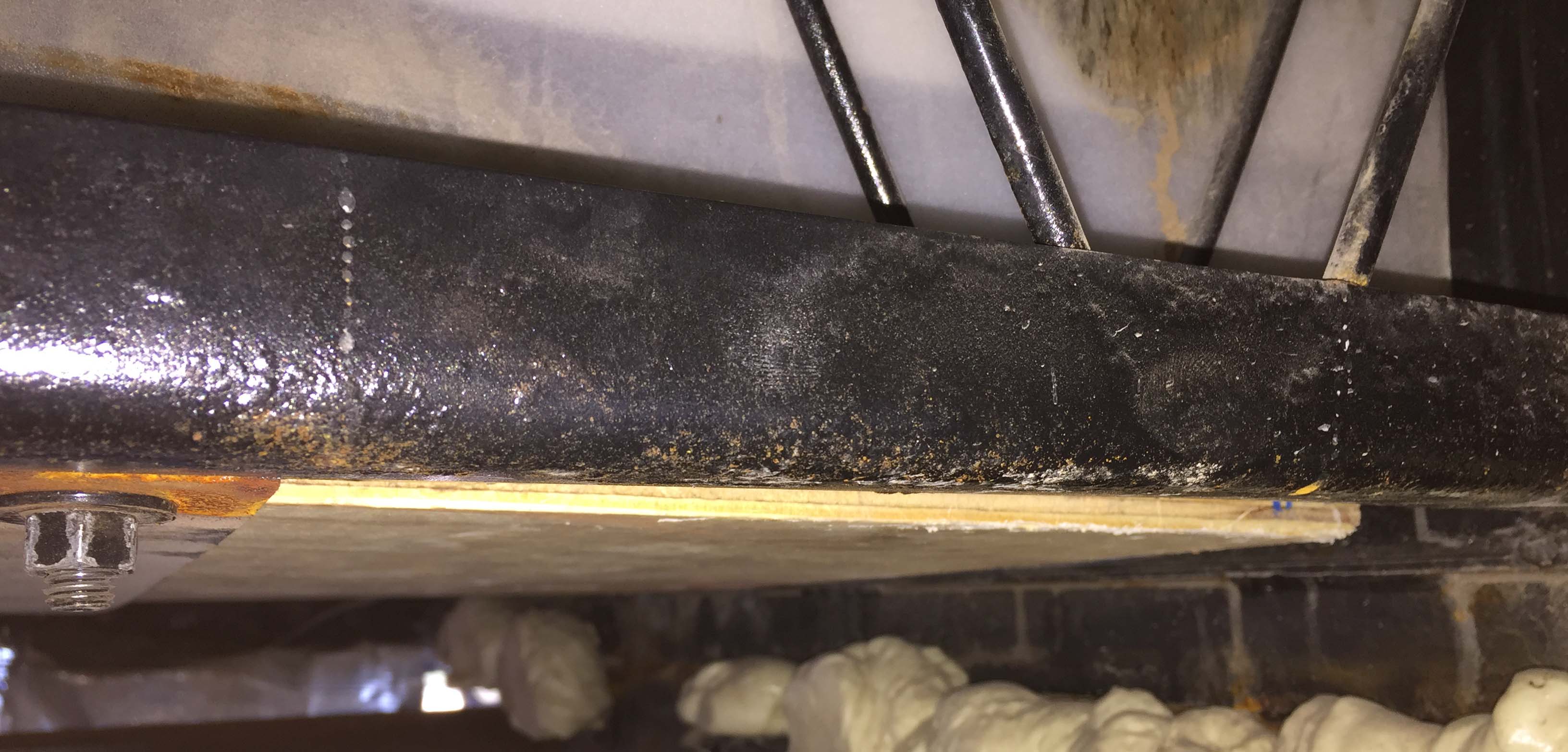 I also took a look at the unsupported end, and there was only about 1/2″ of deflection, so I’m confident that the fix is a good one and will hold more or less indefinitely.